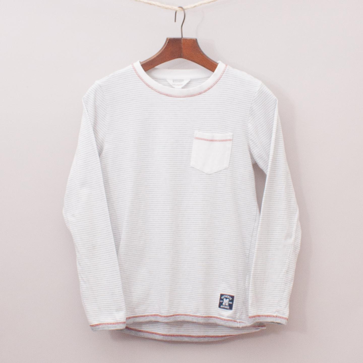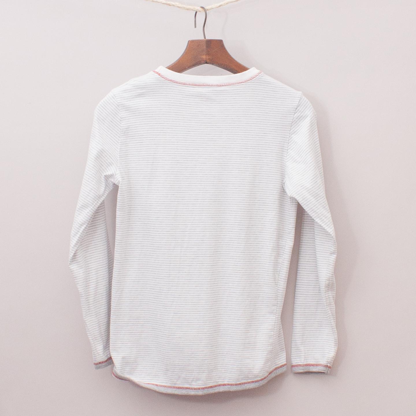 Milkshake white and grey striped long sleeve top with single front pocket and red trim throughout 98% Cotton, 2% Polyester