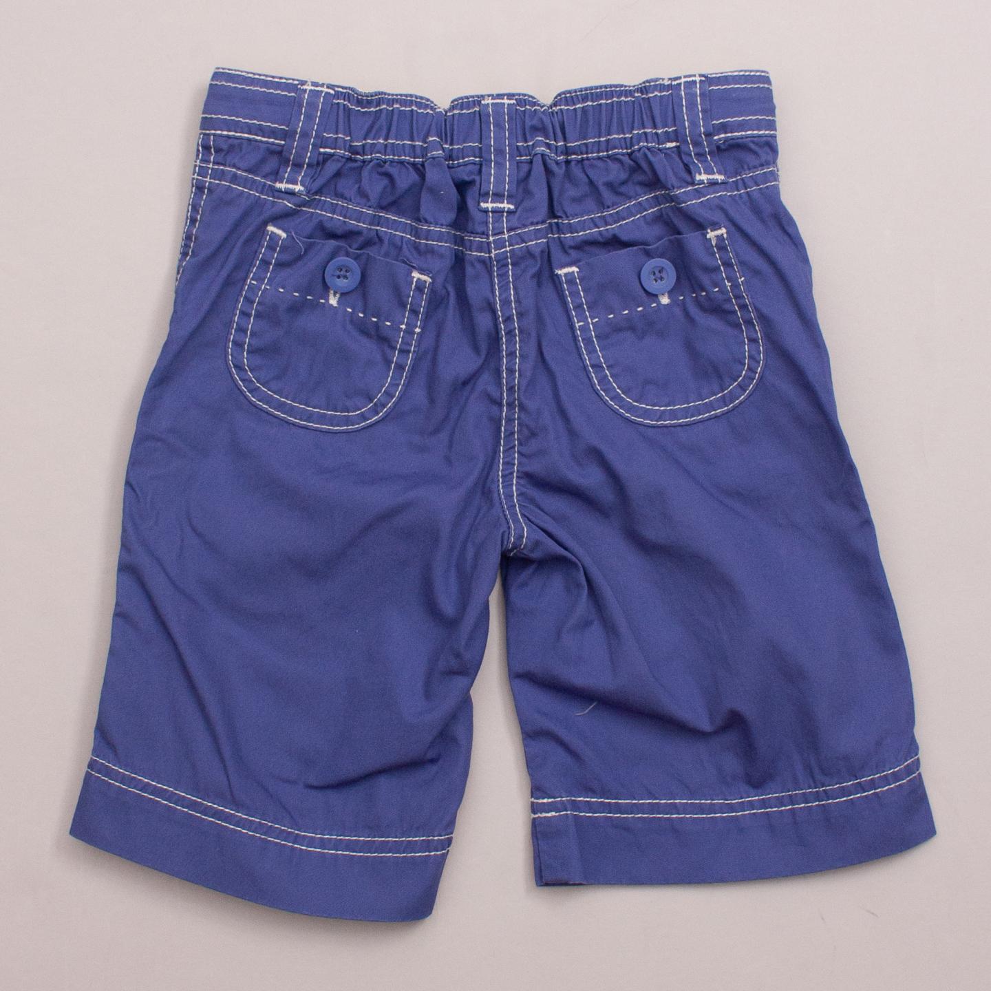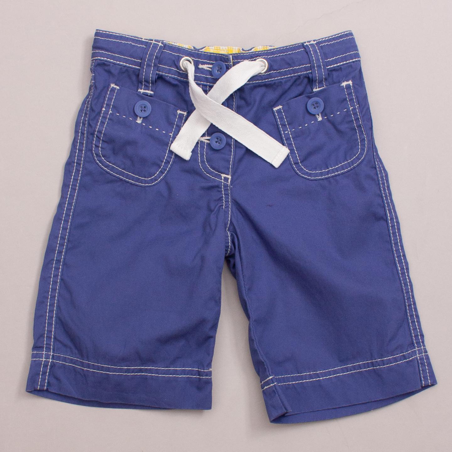 Mini Boden "brand new without tags" blue shorts with exposed stitching detail, front and back pockets, belt loops and button fastening - 100% Cotton