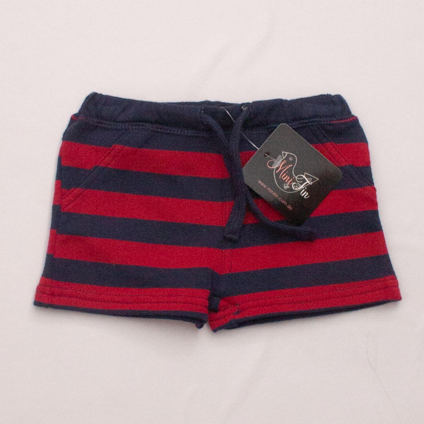 Mini Fin "brand new with tags" navy blue and red striped shorts with elastic waistband and drawstring