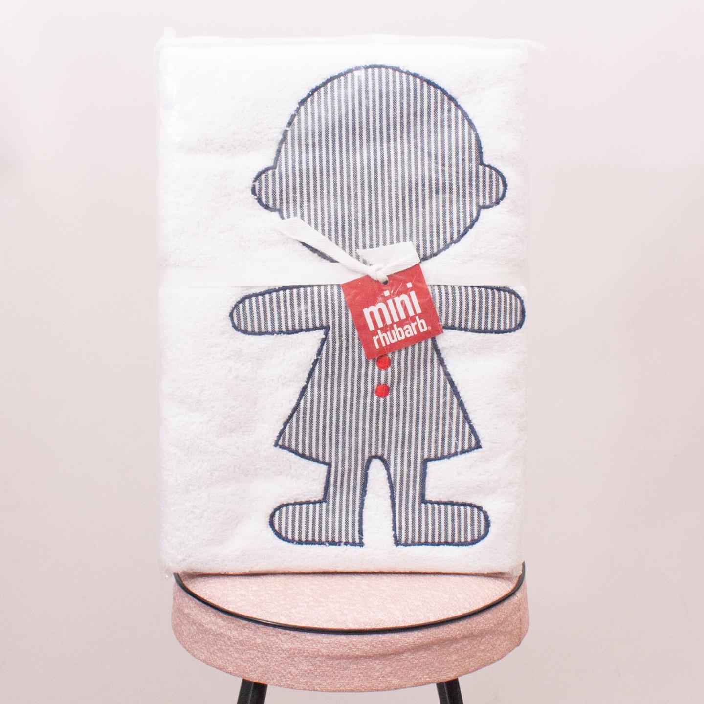 Mini Rhubarb white towel with embroidered child on the front - Size 70cm x 140cm