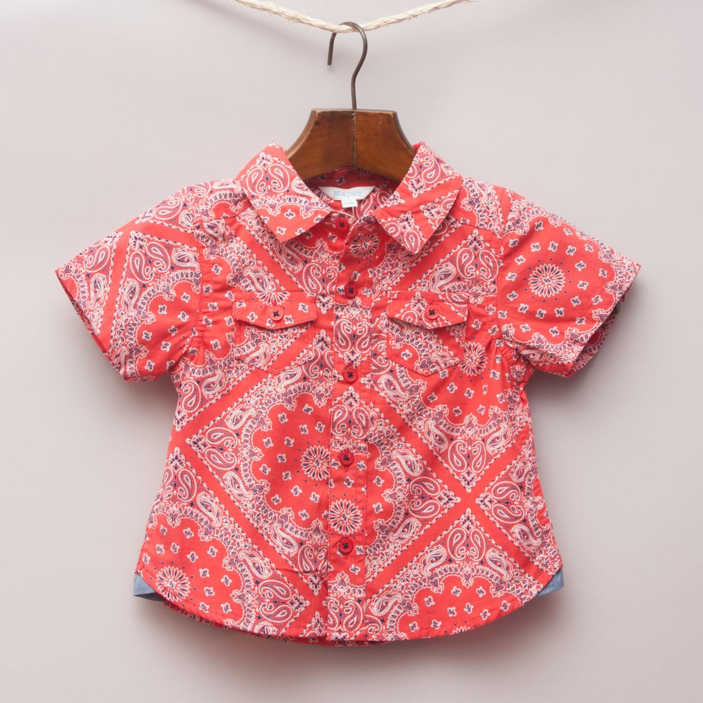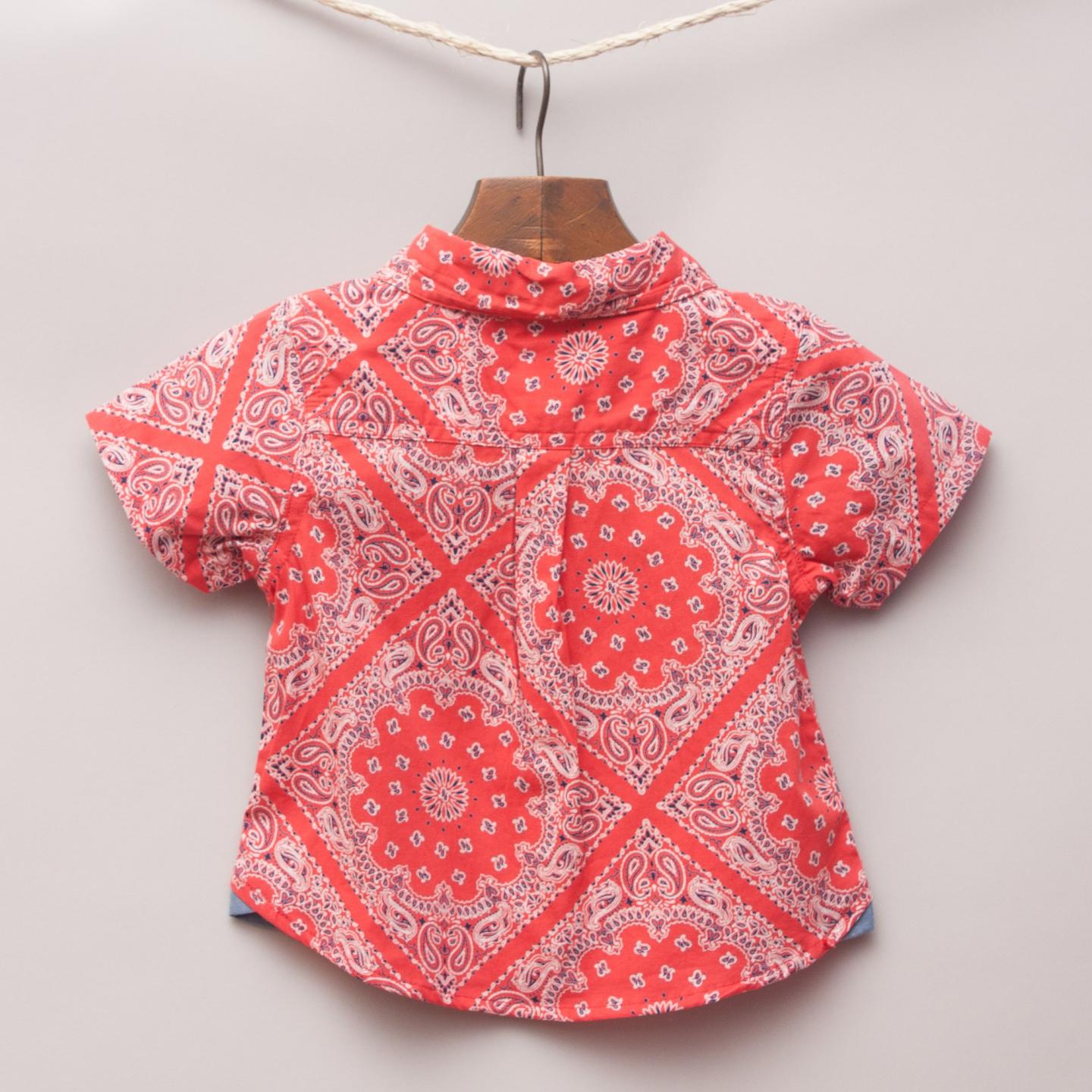 Mix Baby "brand new with tags" red, white and navy paisley short sleeve shirt with two pocket front and full button down front