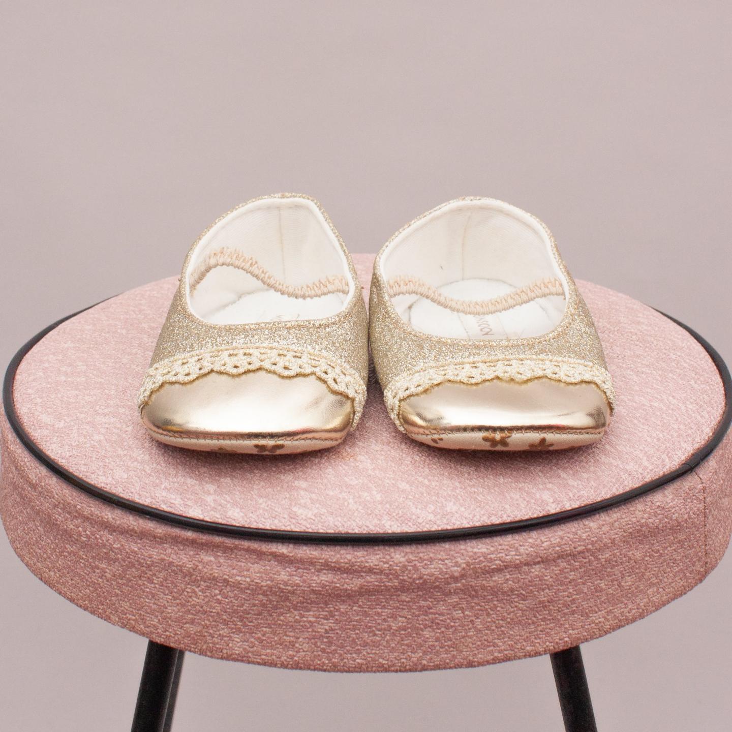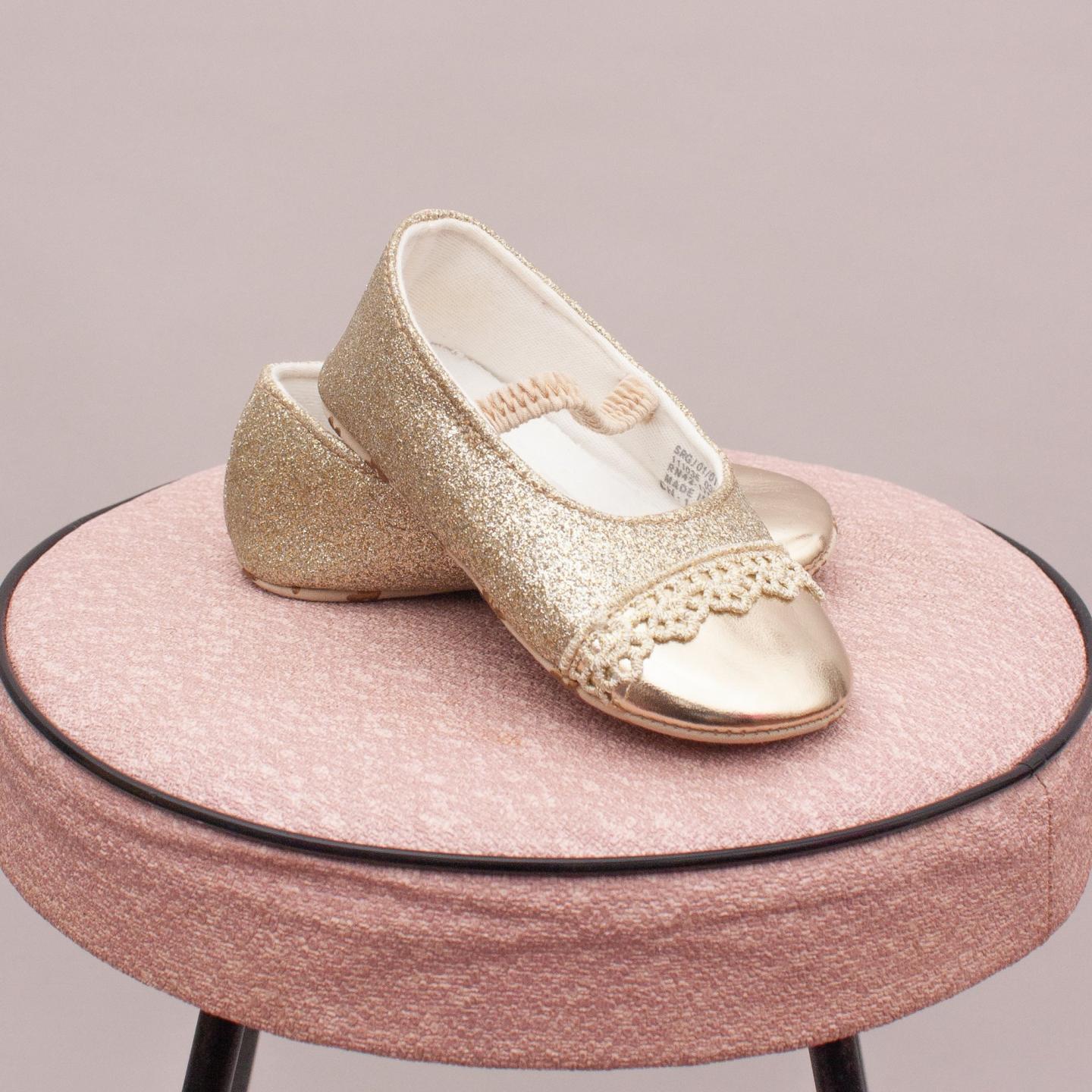 Monsoon gold, glitter and lace embellished slip on's with elastic strap - Size 12-18 Mths