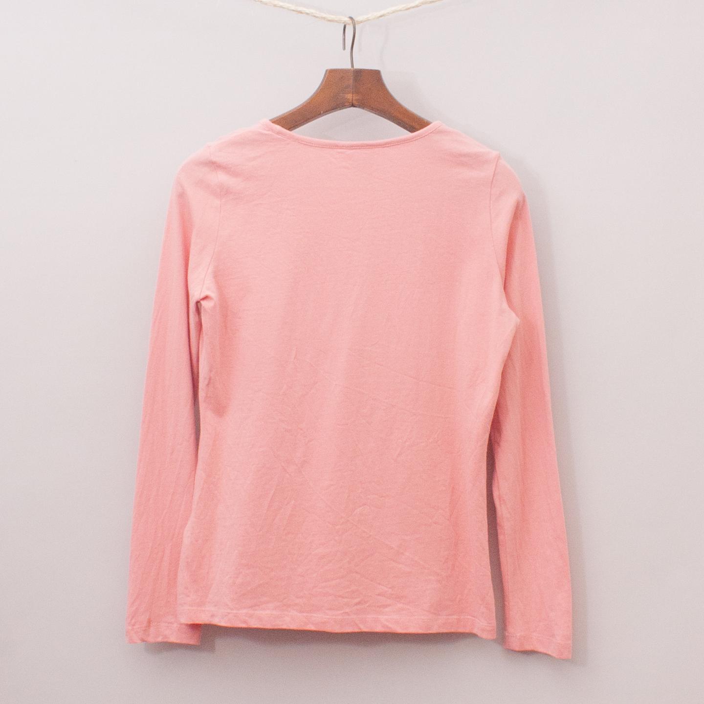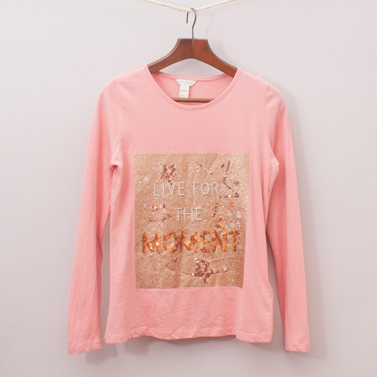 Monsoon peach toned long sleeve with glitter square and slogan on the front *100% Organic Cotton