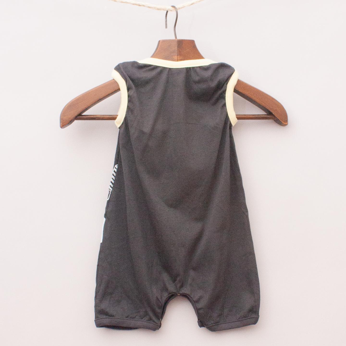 Monstar "brand new with tags" black and ice-cream printed sleeveless romper with yellow trim and snap button closures *Cotton, Spandex Blend