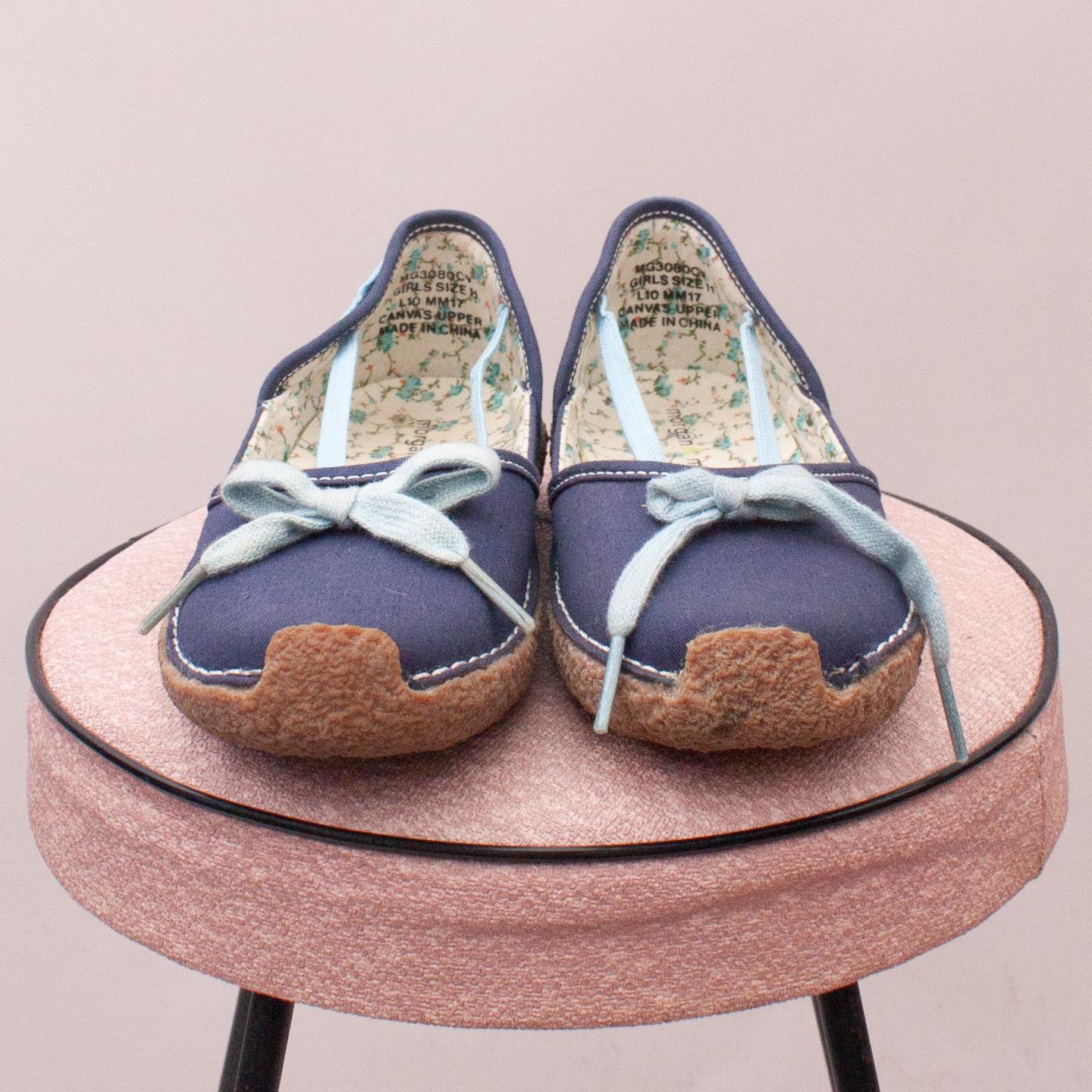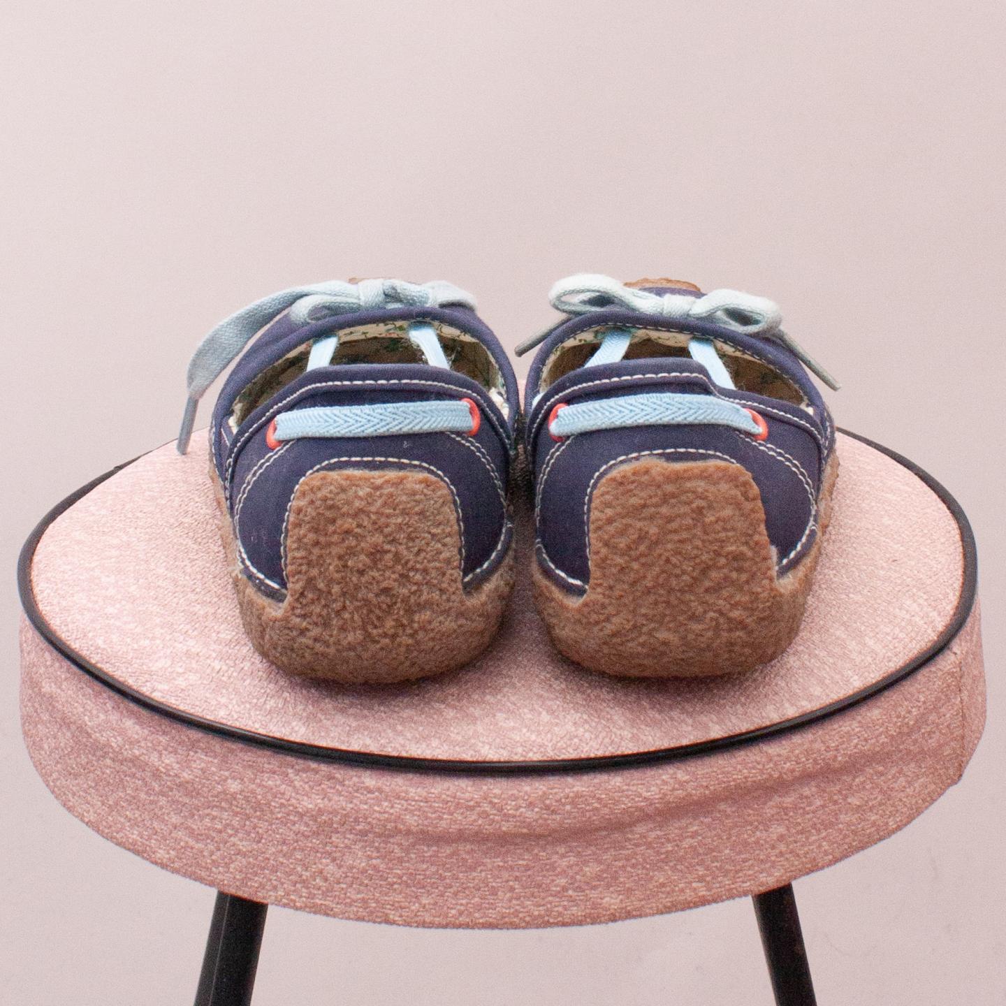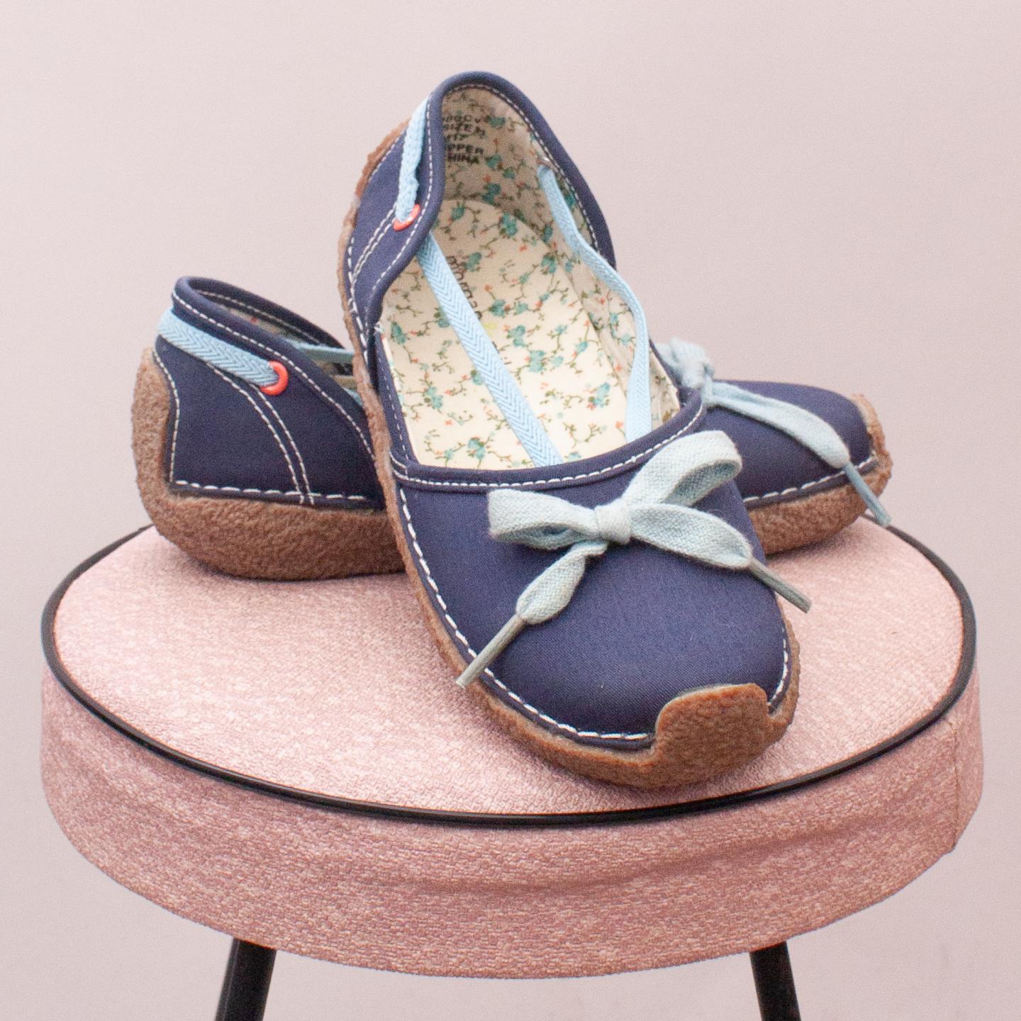 Morgan & Milo blue canvas slip on shoes with blue lacing detail and sturdy rubber soles - EU 29 (Age 5 approx.)