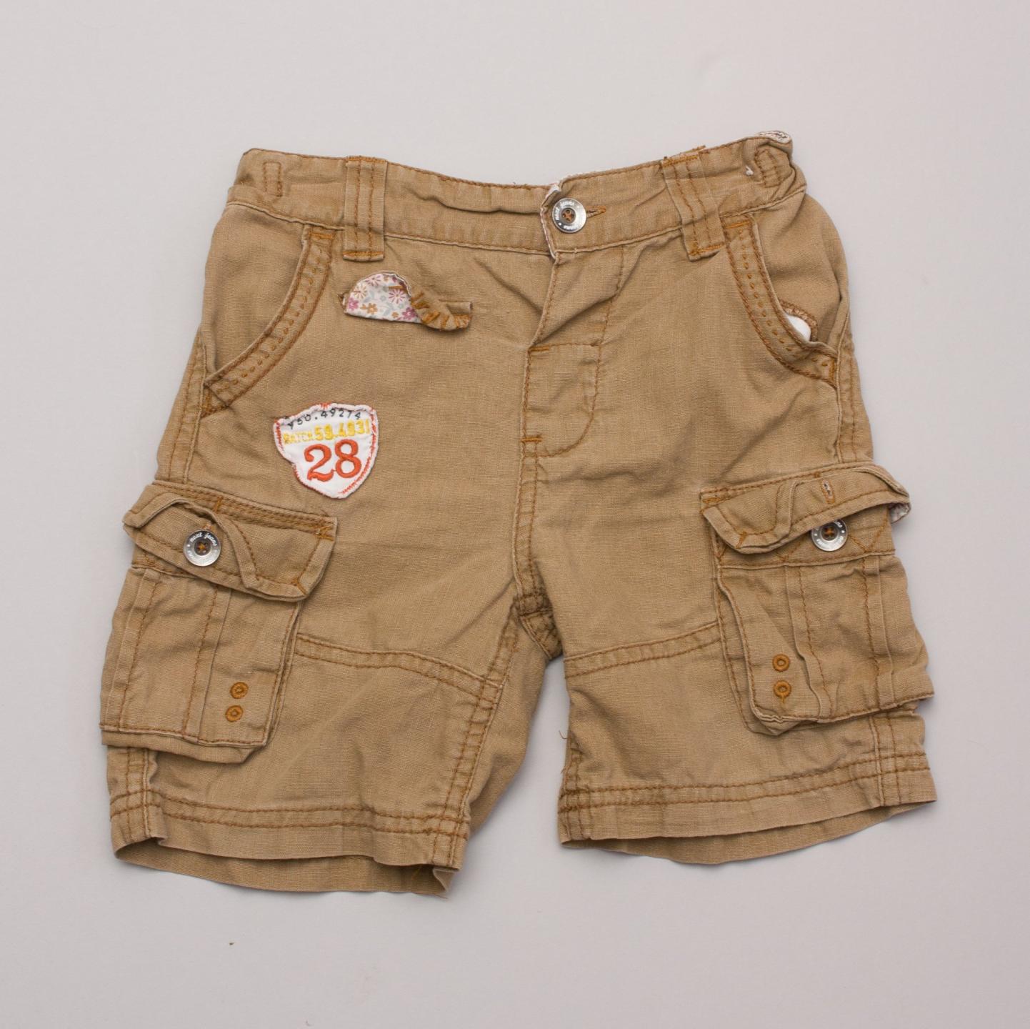 Next brown cargo shorts with multiple pocket details, exposed stitching, embroidered patch, belt loops and button fastening