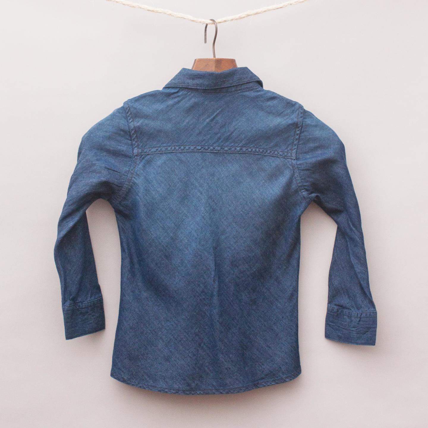 Next "brand new with tags" navy blue chambray long sleeve shirt with single front pocket