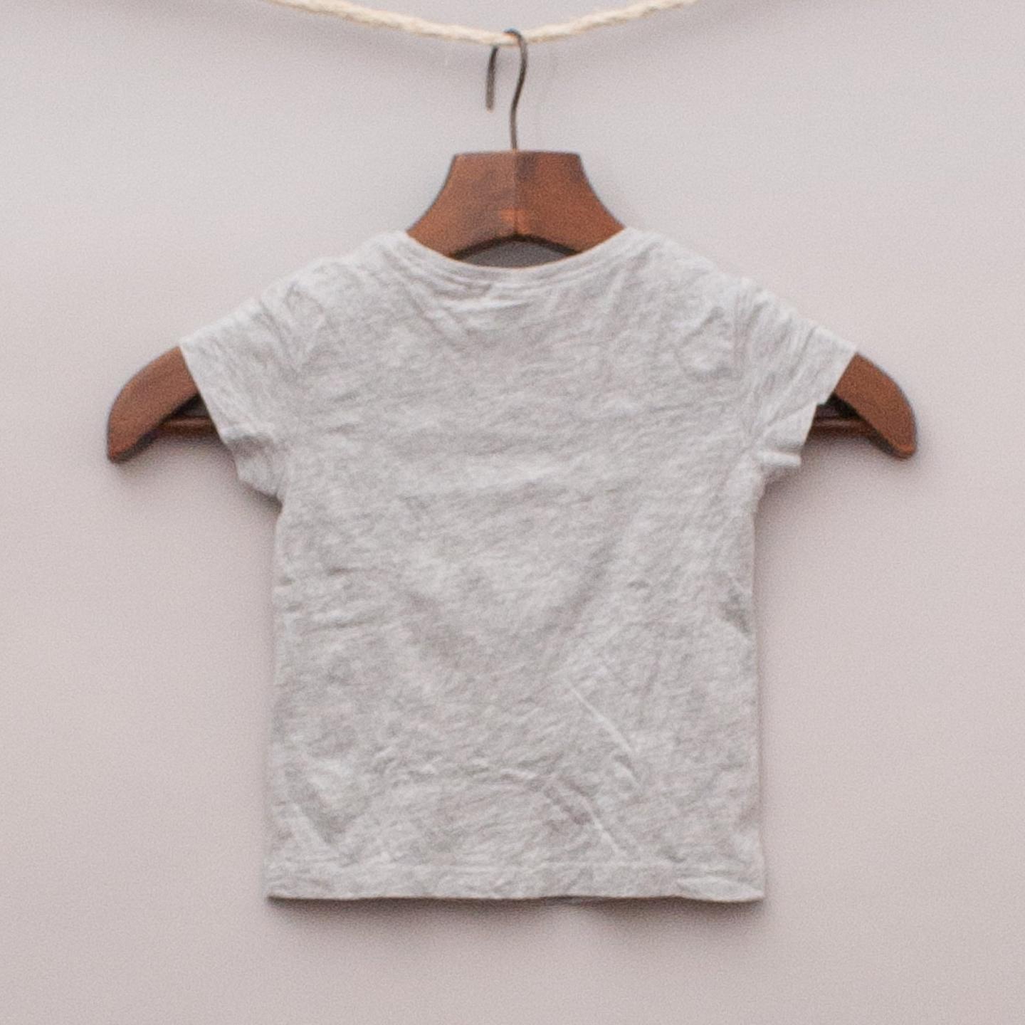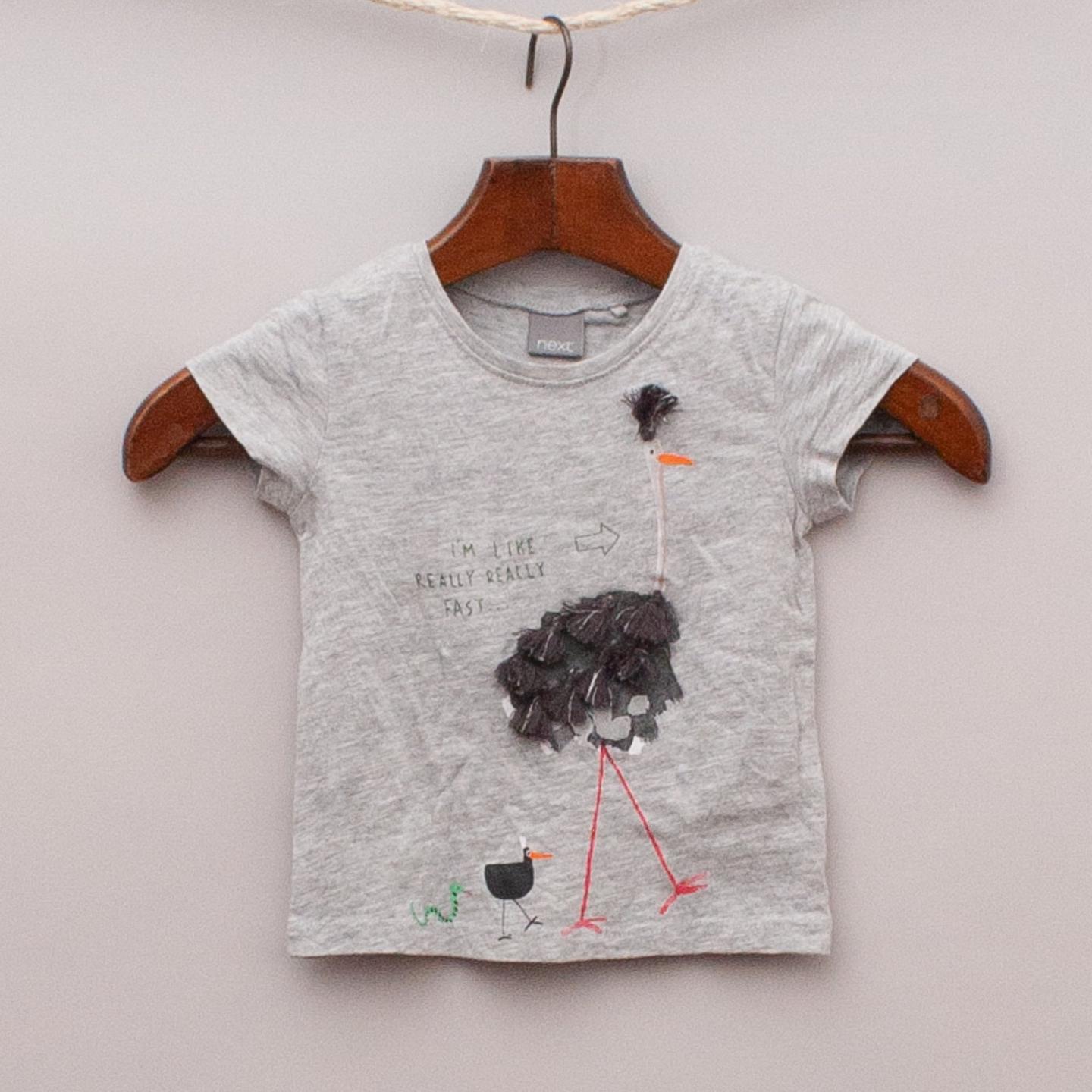 Next grey t-shirt with embellished emu on the front and printed bird and snake