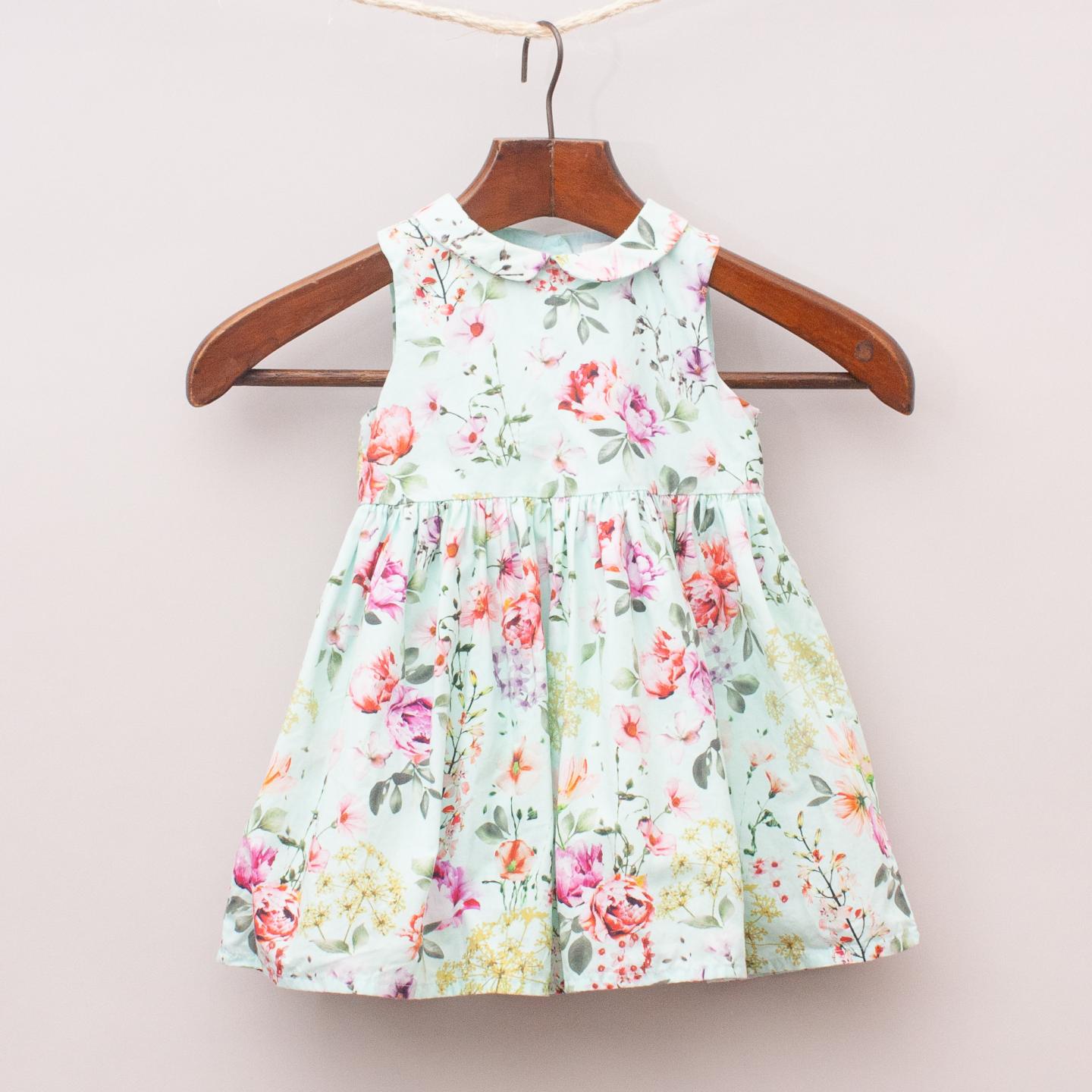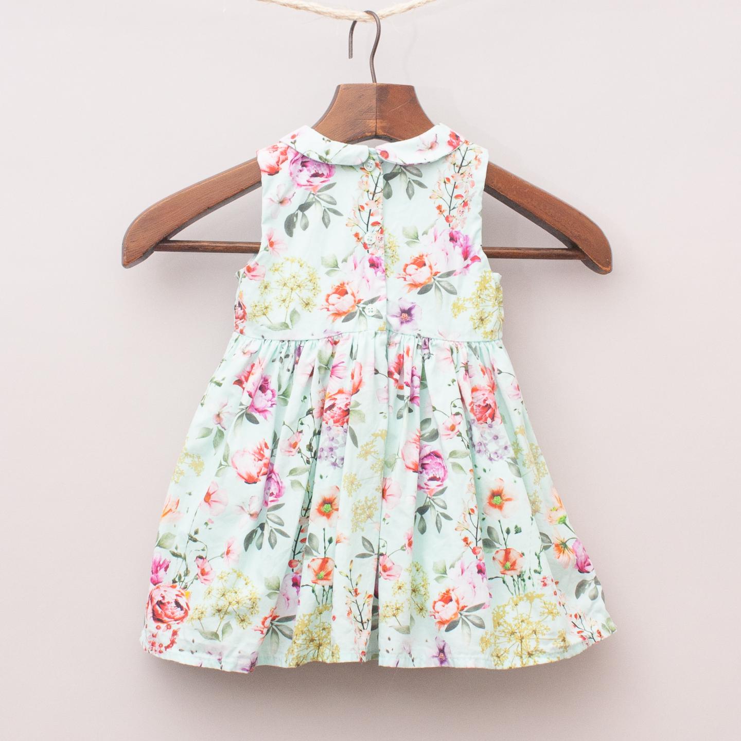 Next green and floral patterned dress with gathered skirt, fully lined with button down back closure *100% Cotton