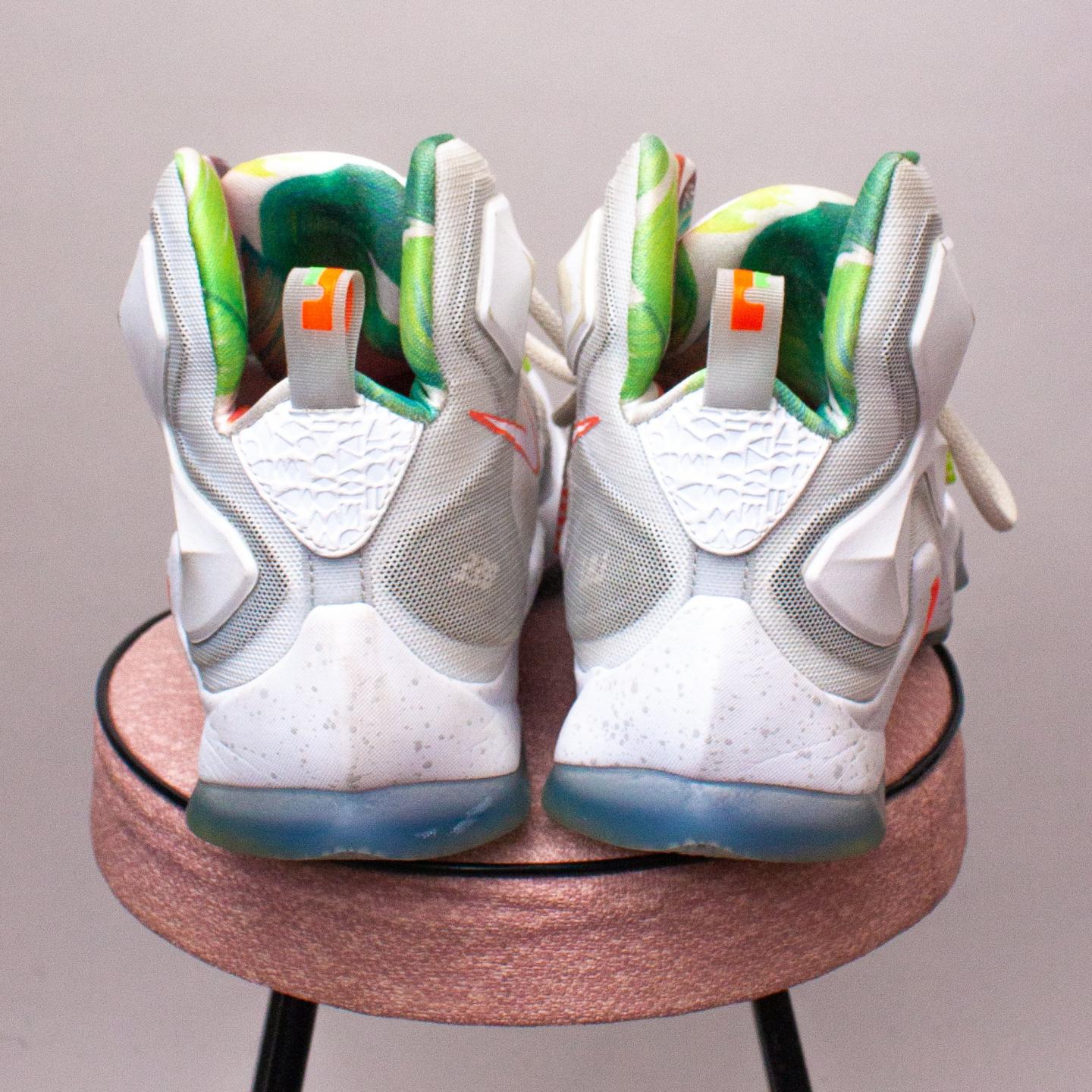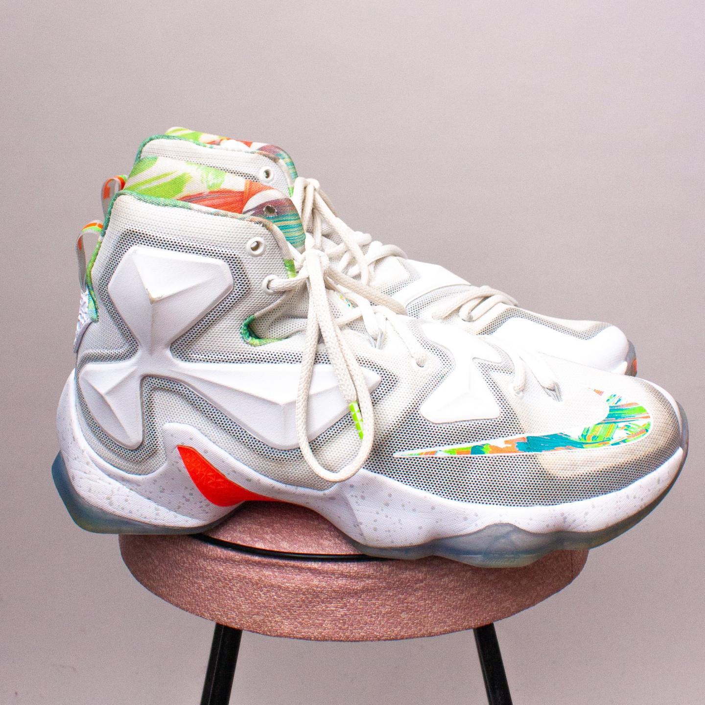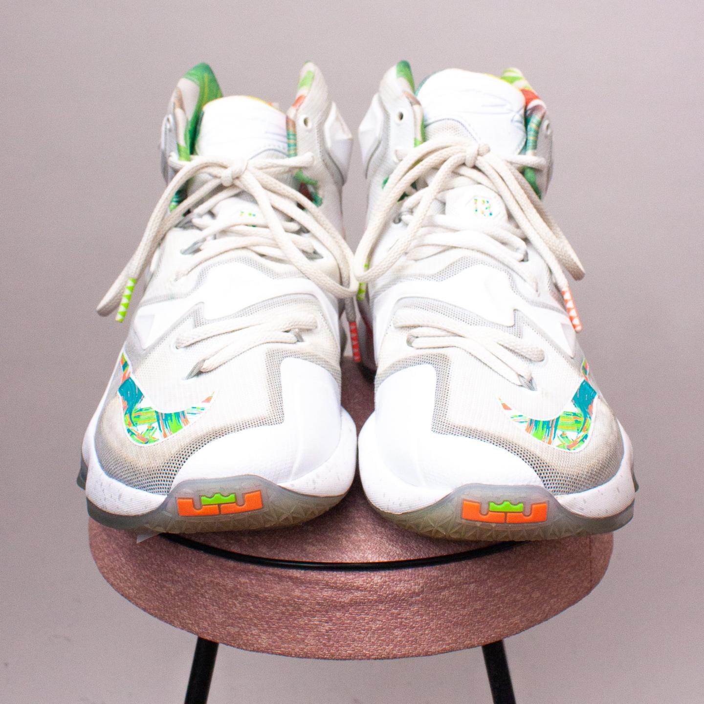 Nike white basketball sneakers with raised panels, colorful details, white laces and sturdy rubber soles - Size US 8 (Age 10-12 Approx.)