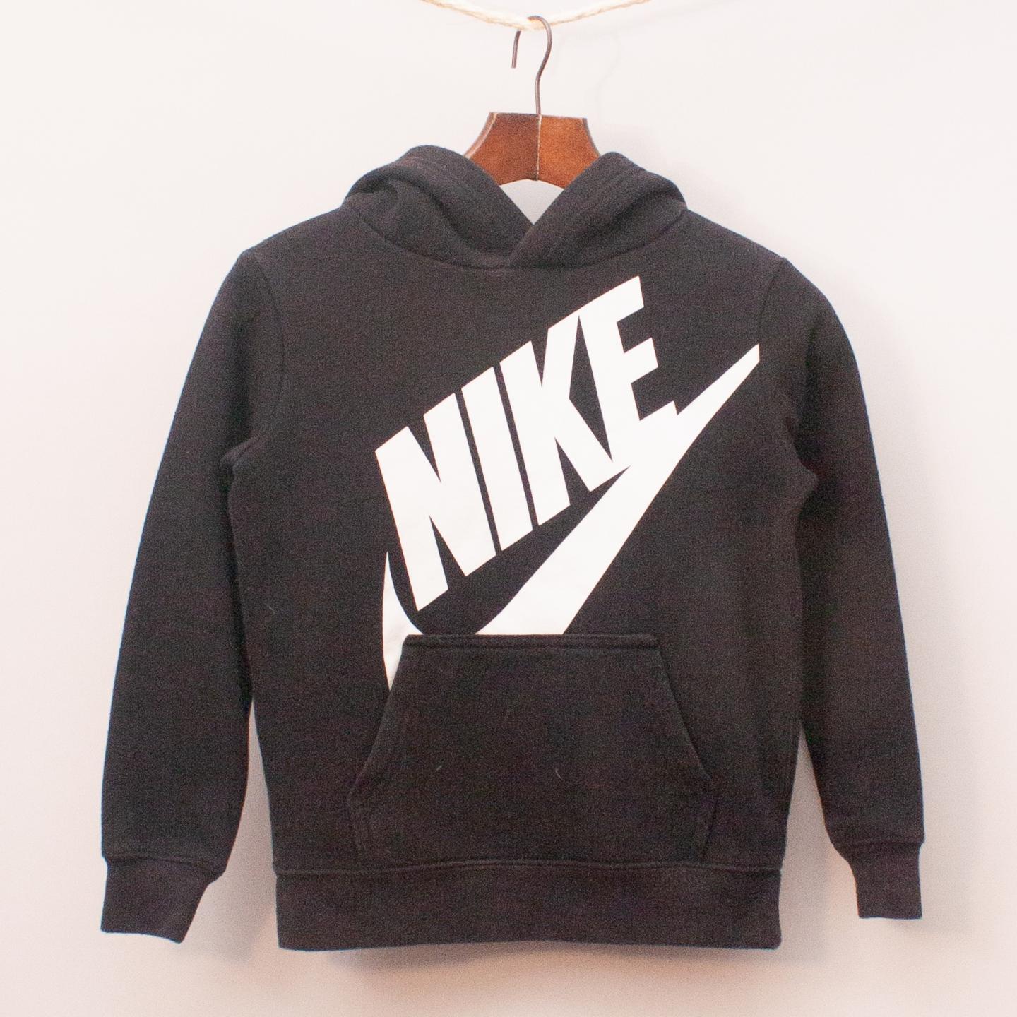 Nike black hooded jumper with large front pocket and printed white logo on the front *60% Cotton, 40% Polyester