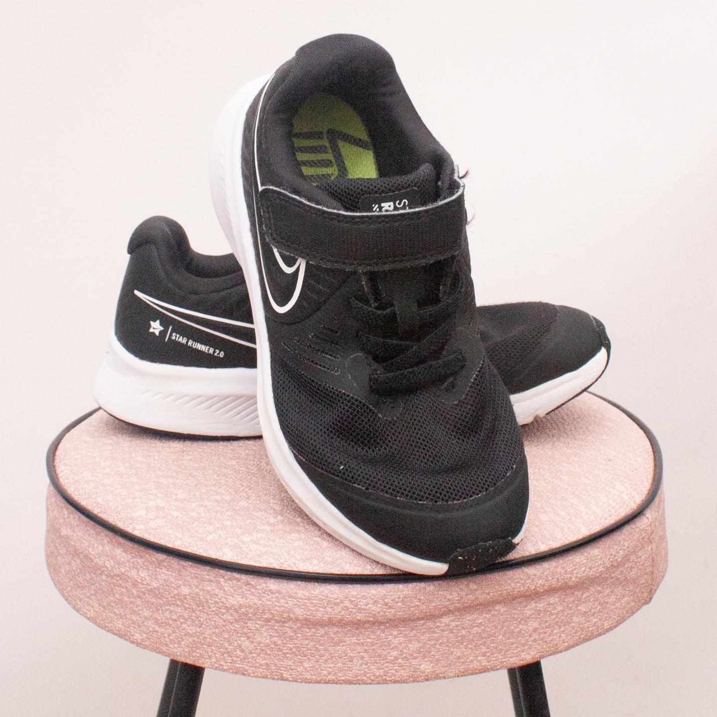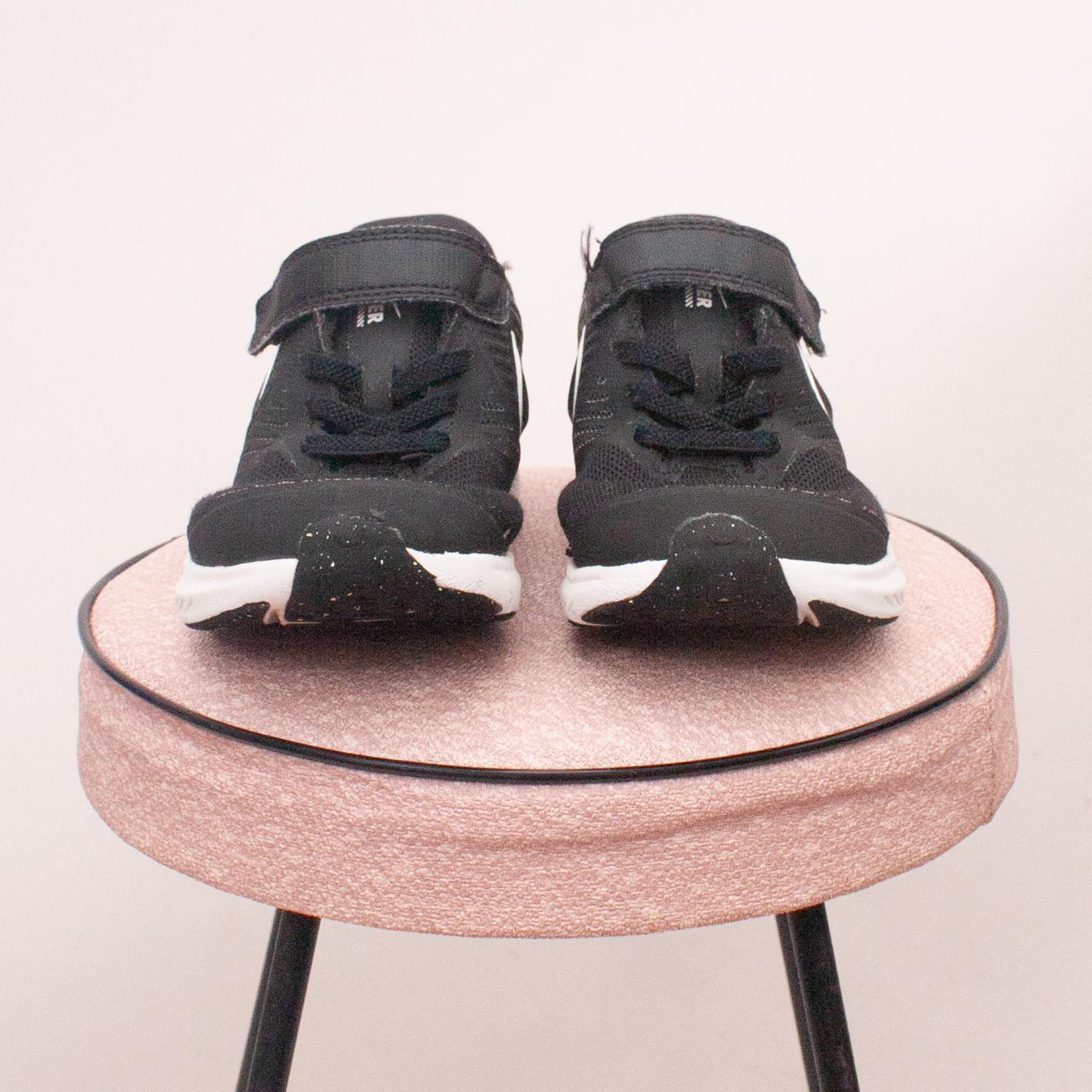 Nike black and white star runners with sturdy rubber soles and single velcro strap - Size EU 28 (Age 4 approx.)