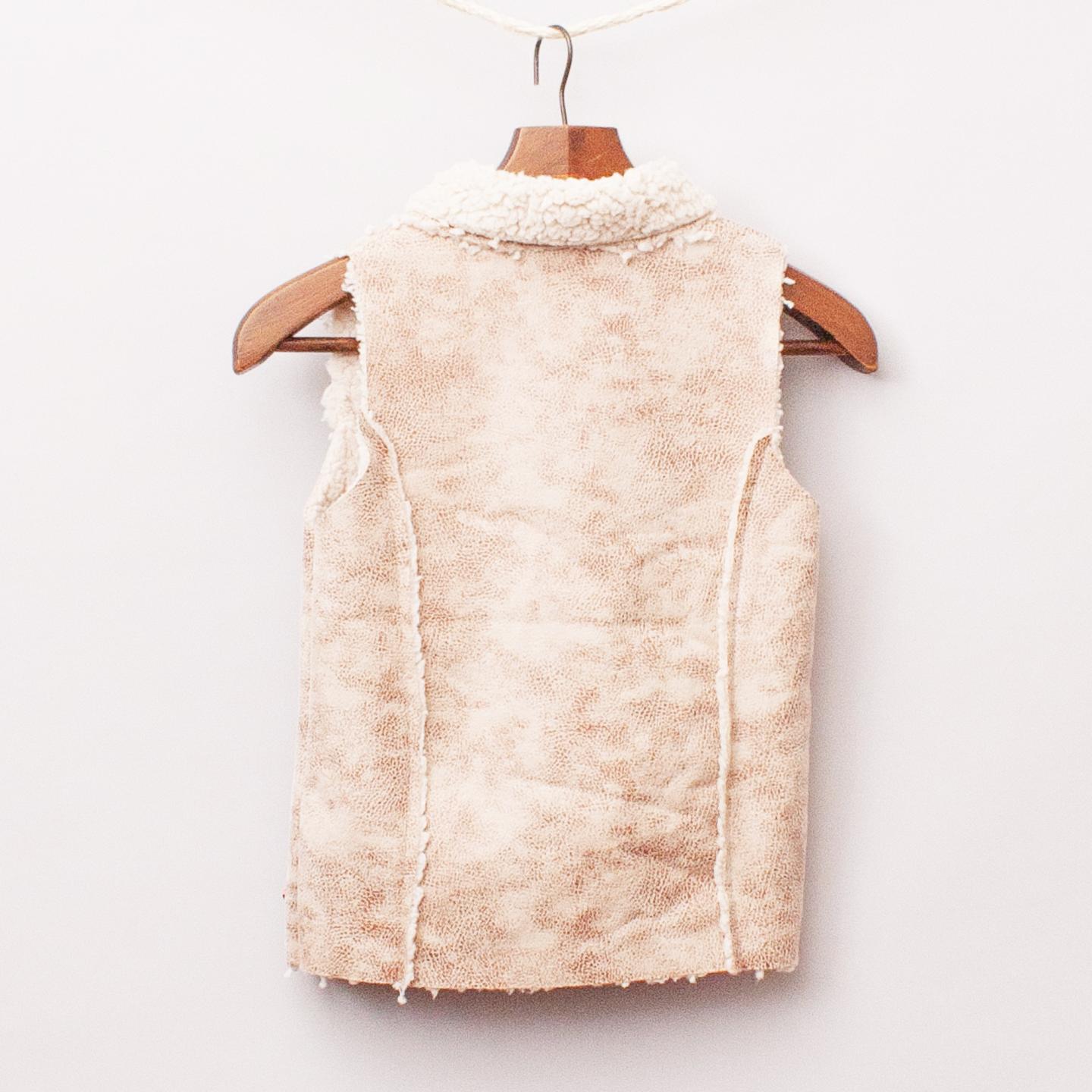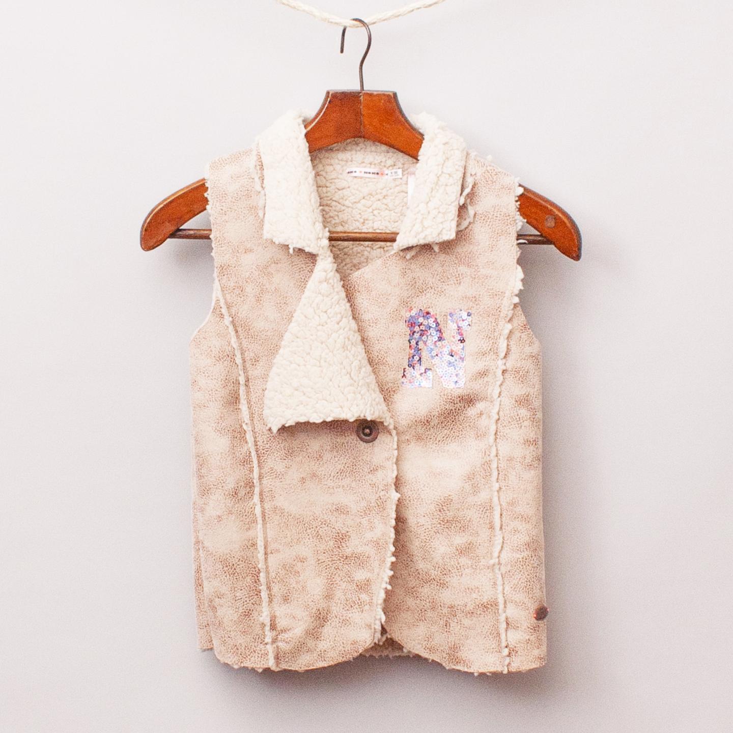 Nono beige shearling lined suede-like vest with sequined 'N' on the front and button closure