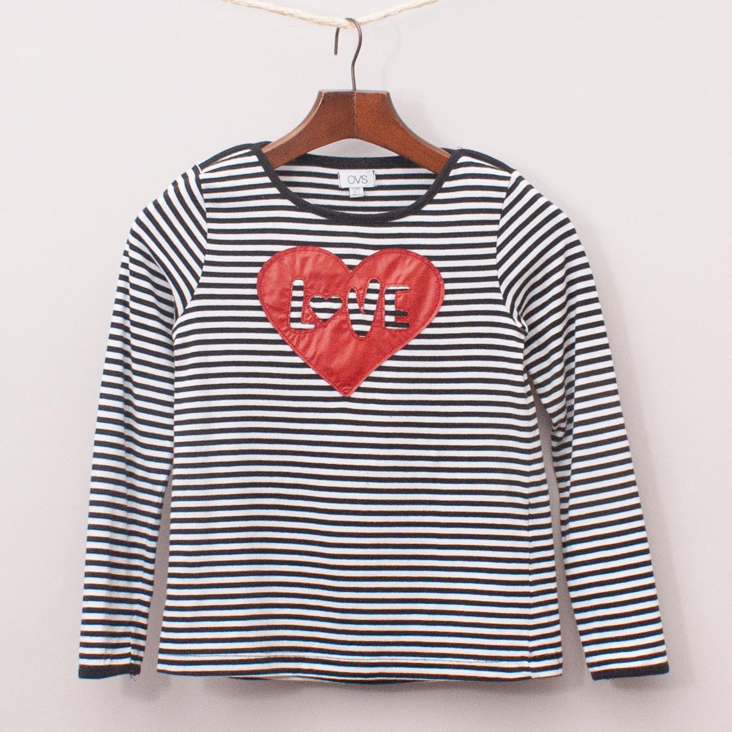 OVS black and white striped long sleeve with heart shaped 'love' on the front *100% Cotton