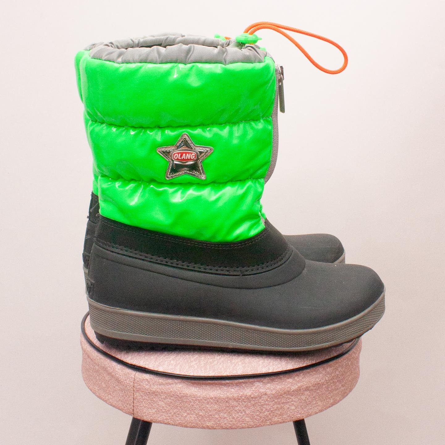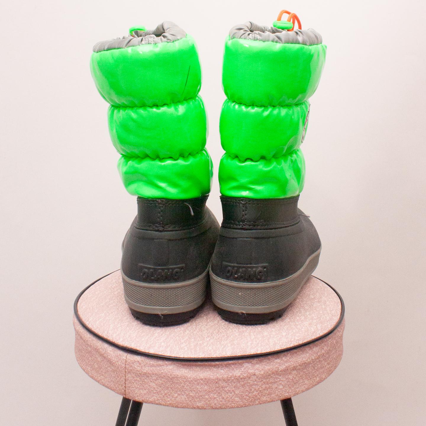 Olang black and brigth green rubber snow boots with zip up front, toggle ankle strap and sturdy rubber soles - Size EU 31 (Age 6 approx.)