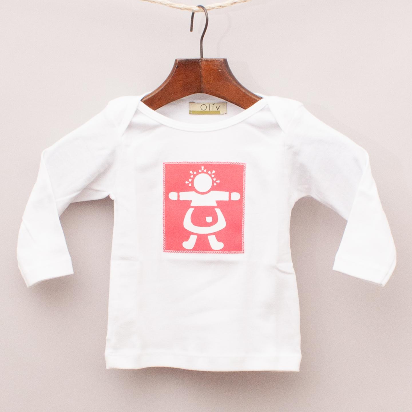 Oliv "brand new in bag" white long sleeve top with red embroidered patch on the front *Comes in original clear bag packaging and is made in Tasmania