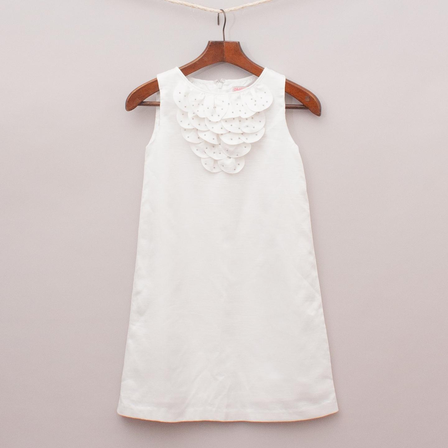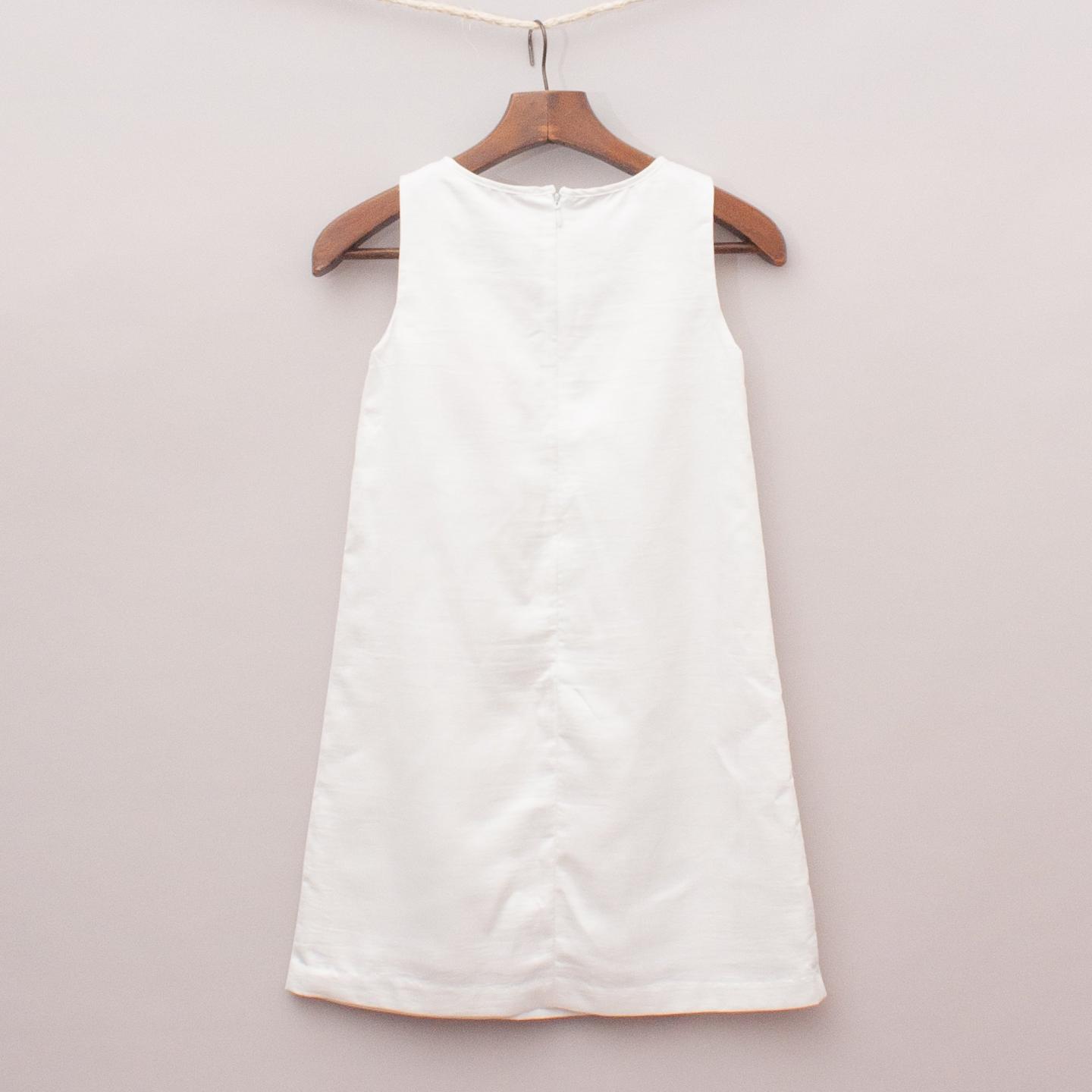 One Red Fly "brand new with tags" pearlised white dress with layered and beaded neckline, fully lined a-line style and zip back closure