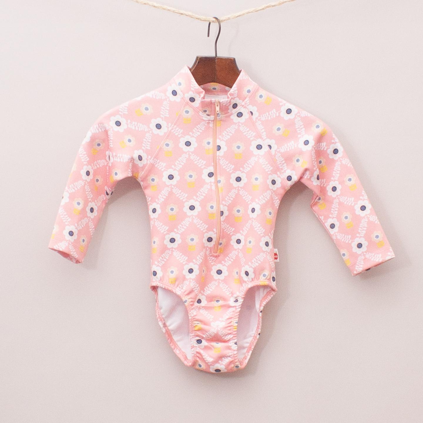 Oobi pink and floral bathers with long sleeves and zip up front *95% Polyester, 5% Elastane
