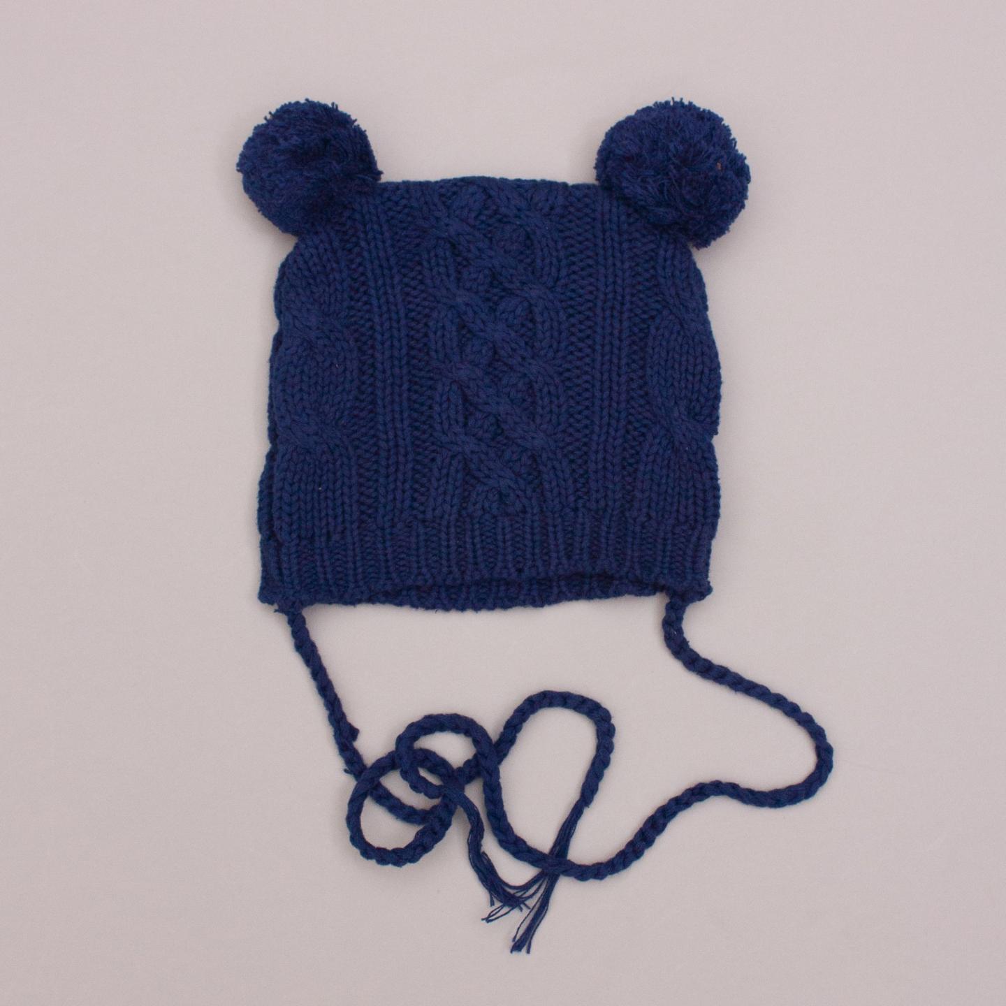 Oobi navy blue knit beanie with pom pom ears and tassels - Size 0-1Yrs