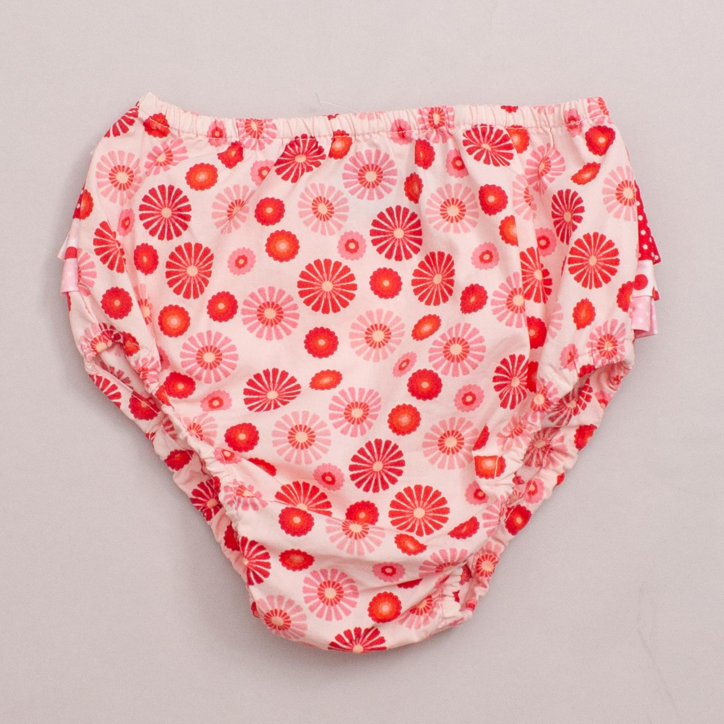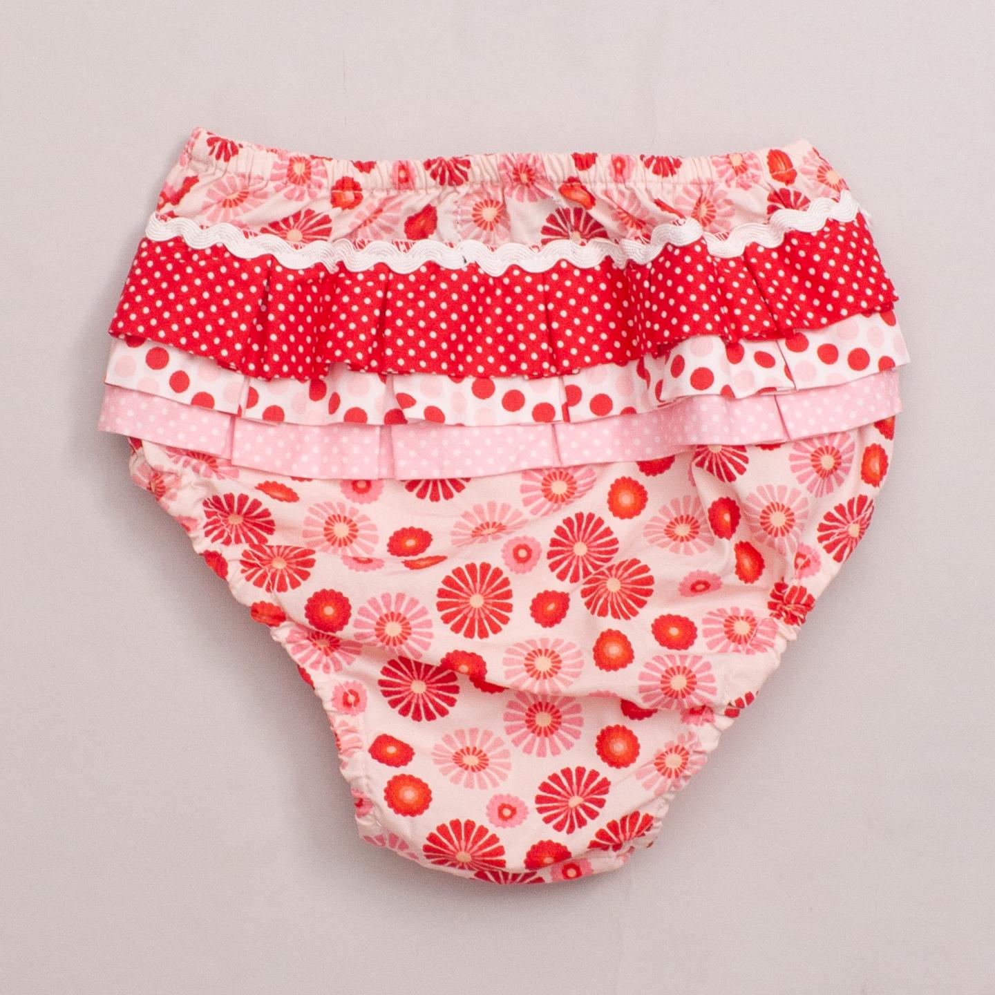 Oobi "brand new with tags" pink and red patterned bloomers with ruffle detail across the back - 100% Cotton