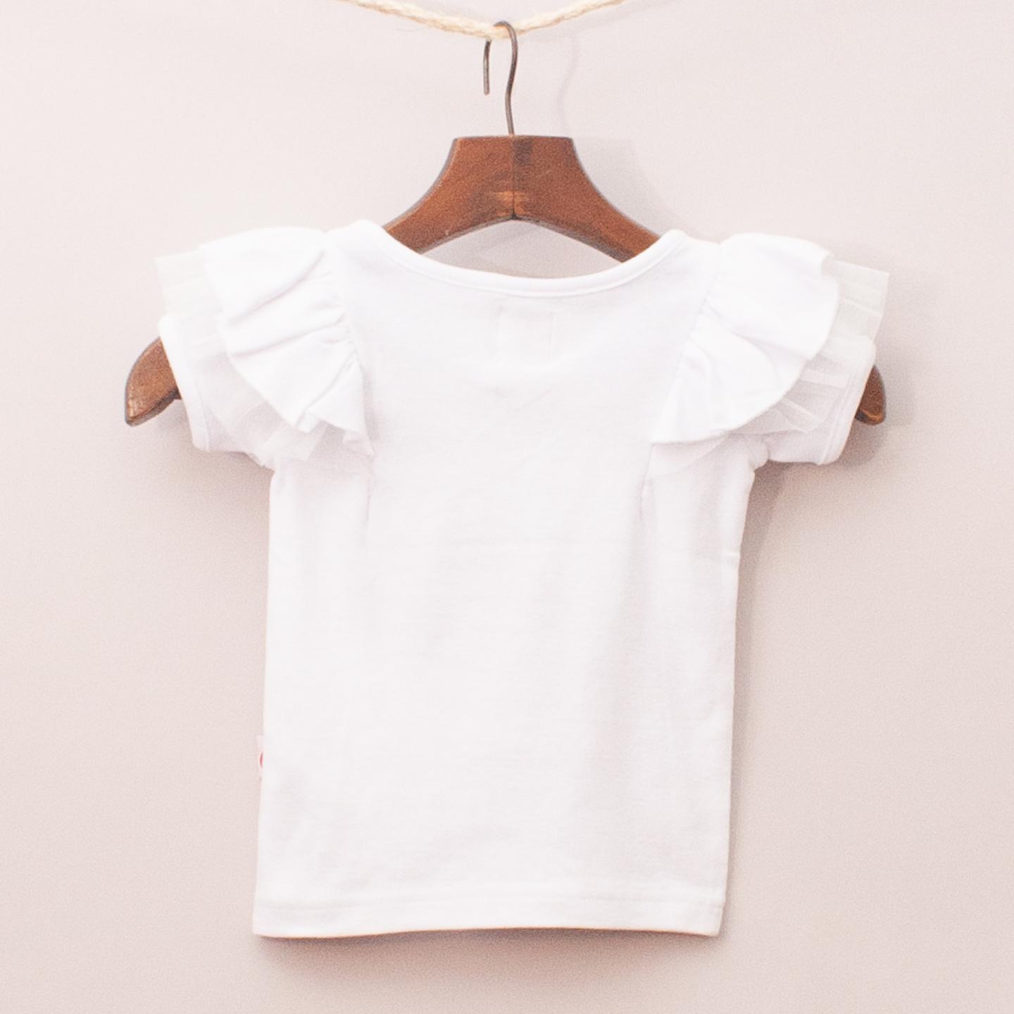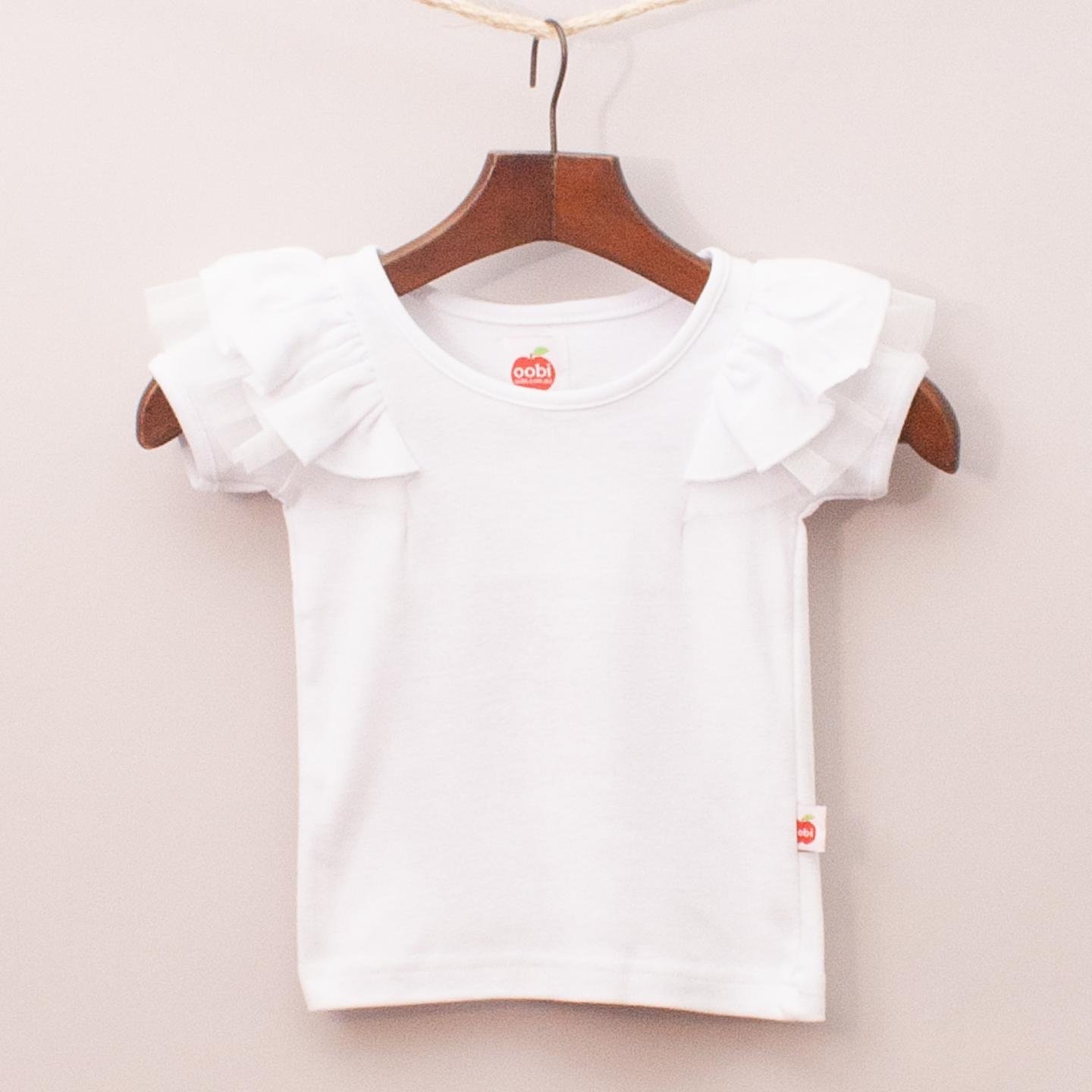 Oobi "brand new with tags" white t-shirt with ruffle and tulle embellished sleeves *100% Cotton