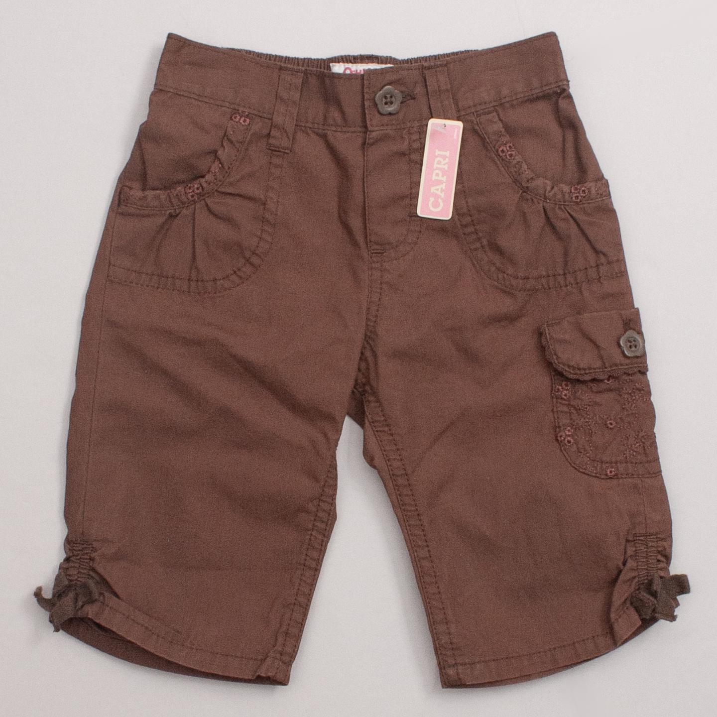 Oshkosh "brand new with tags" brown pants with embroidered details, multiple pockets, belt loops and elastic waistband *100% Cotton