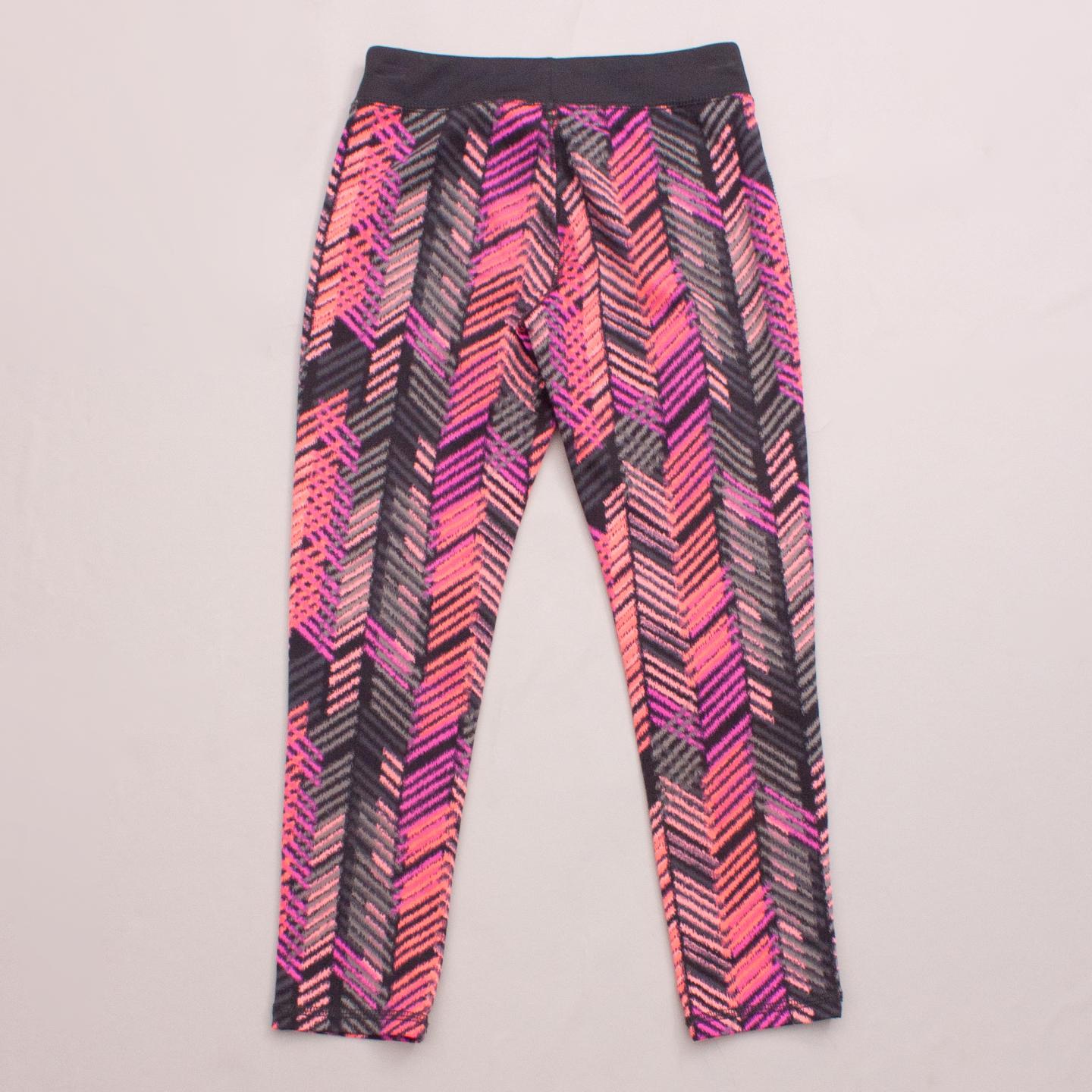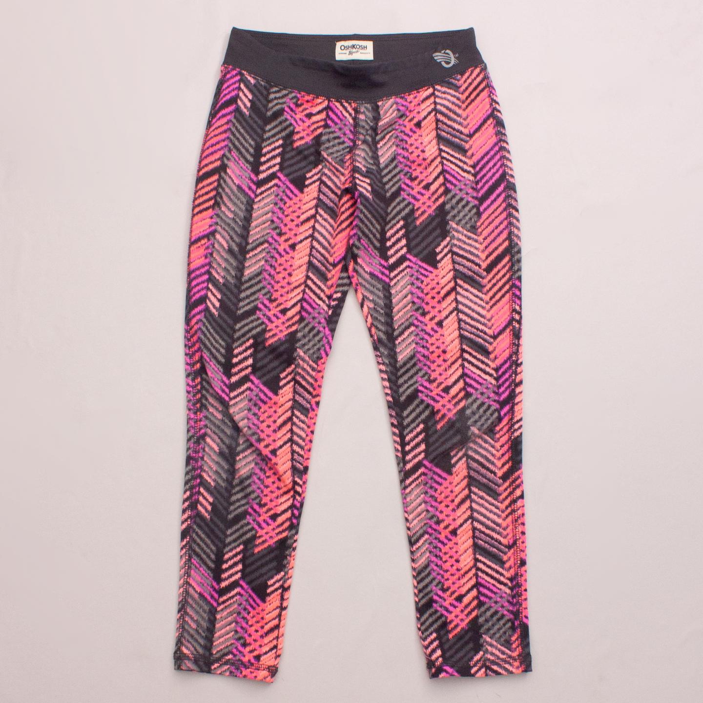OshKosh pink and grey patterned 3/4 leg sports leggings with elastic waistband