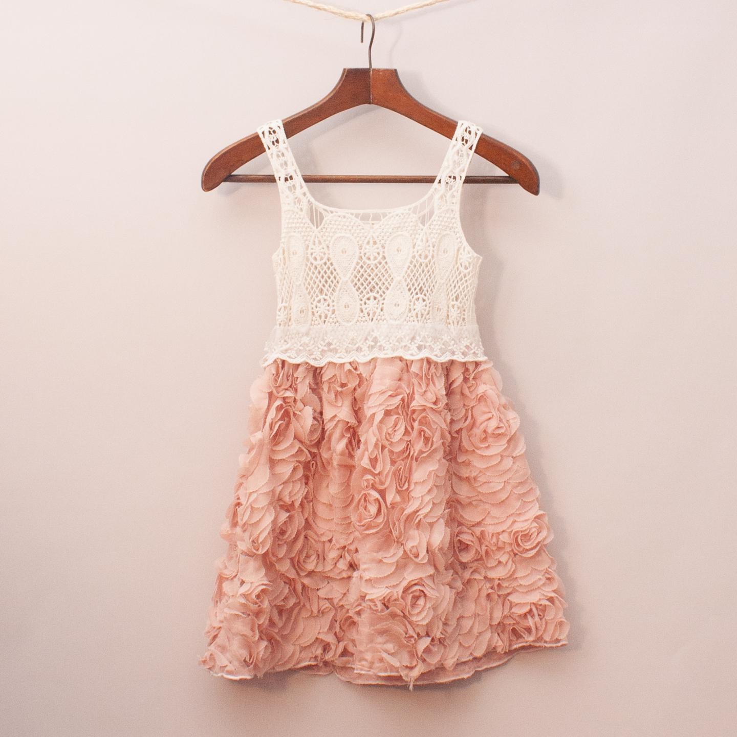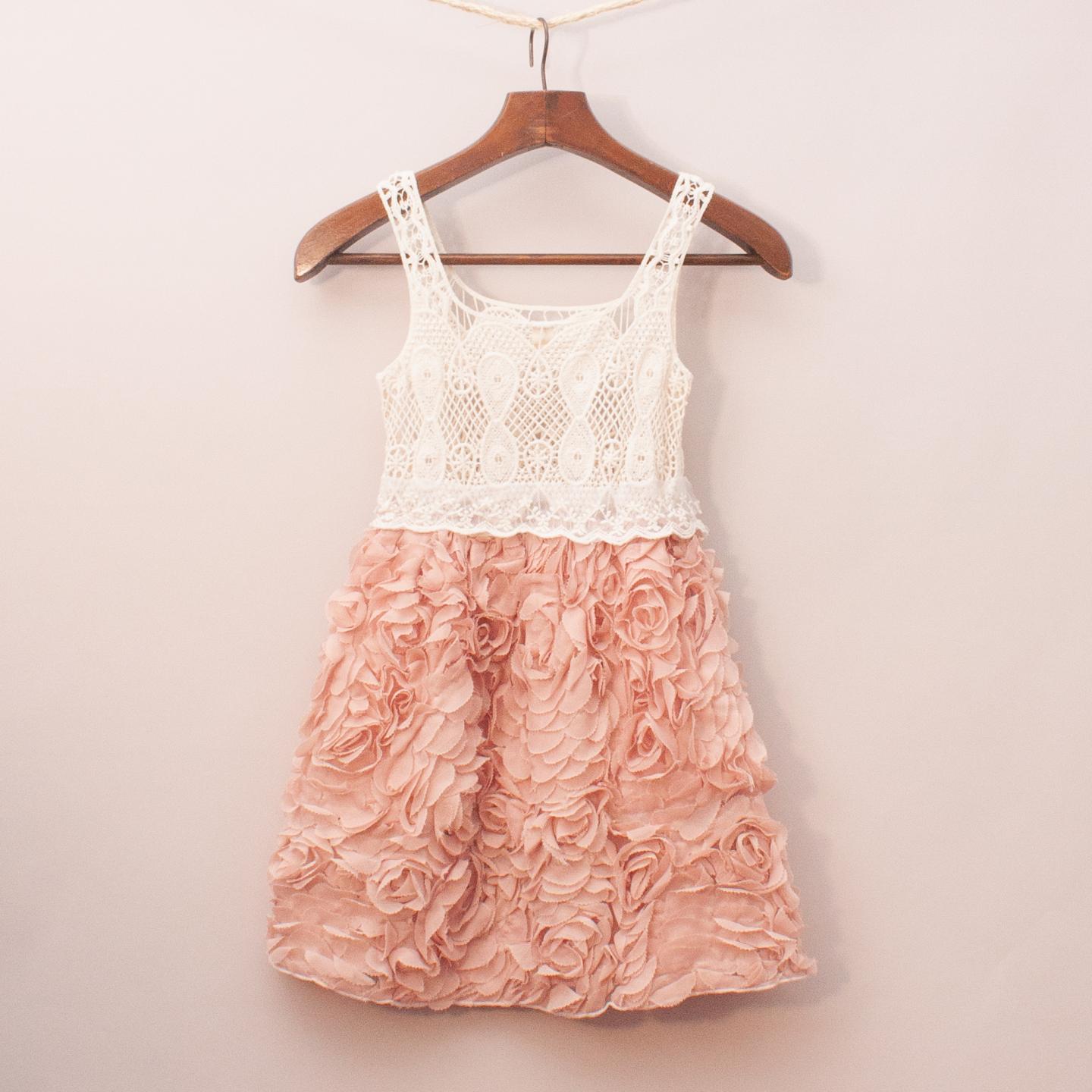 Paddy Soldier cream broderie anglaise dress bodice with tulle flower skirt and lace waistband detail