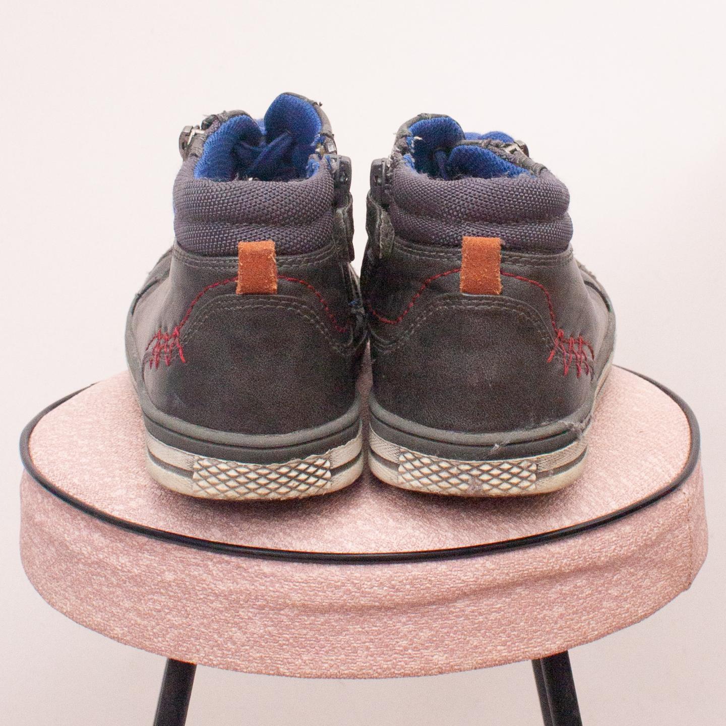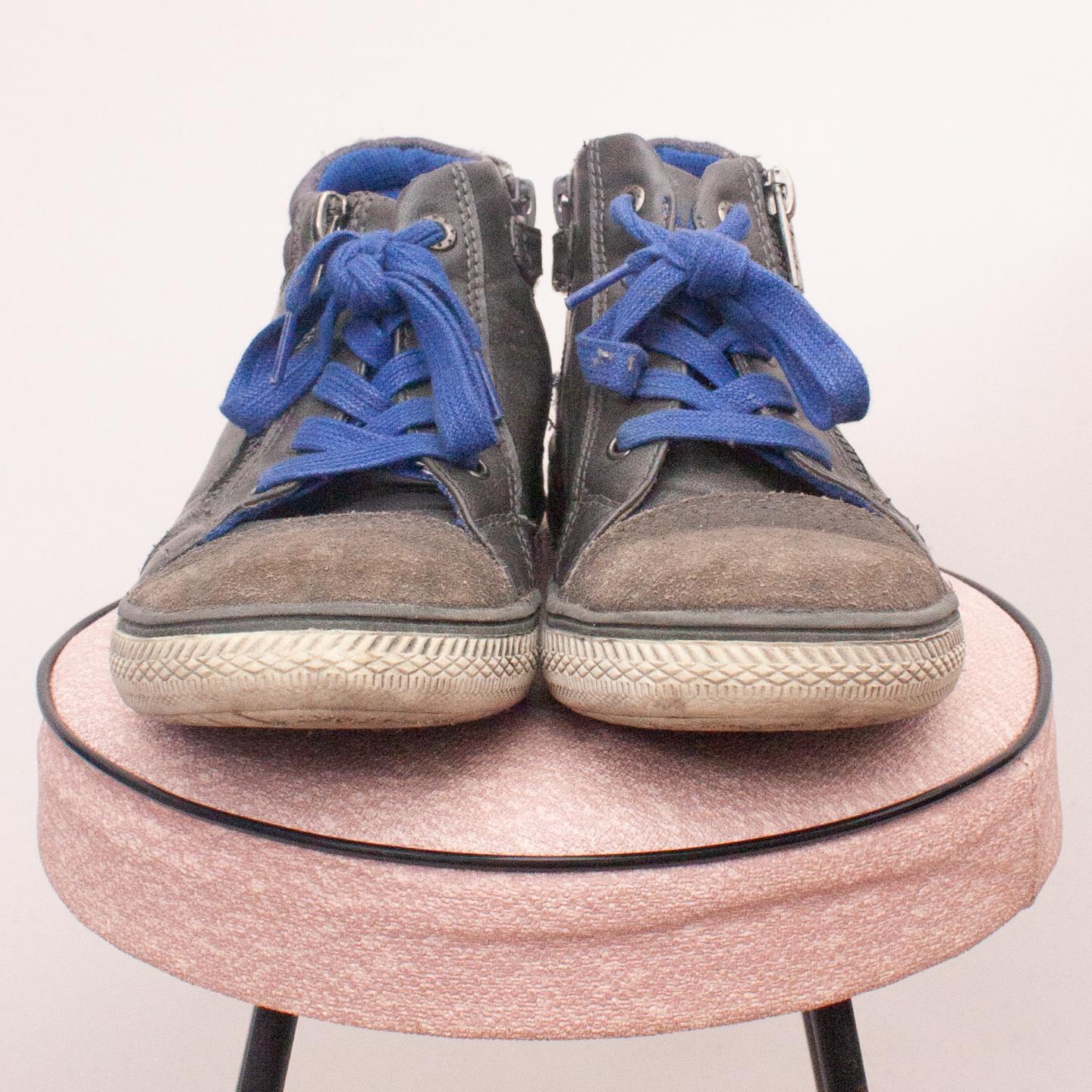 Papaya charcoal leather lace up's with sturdy rubber soles, blue laces and side zip closure - Size EU 33 (Age 6 approx.)