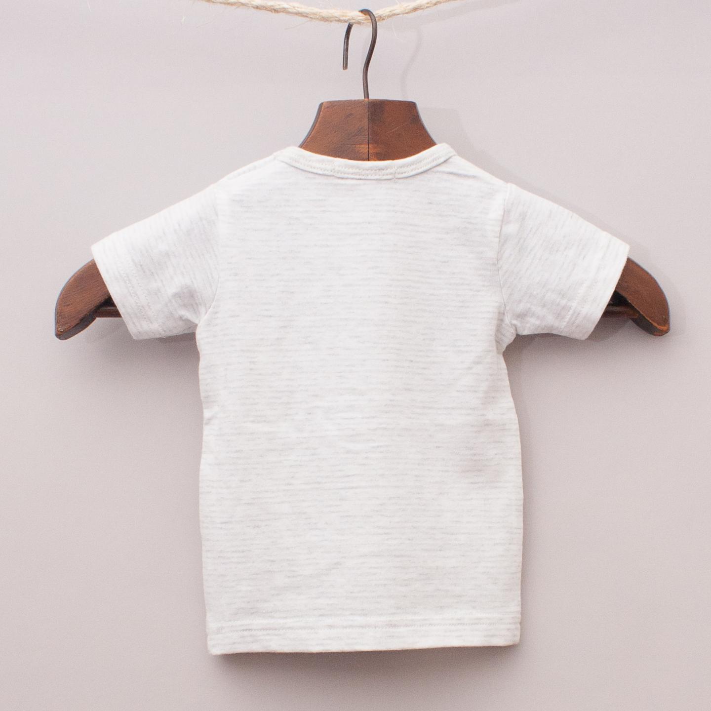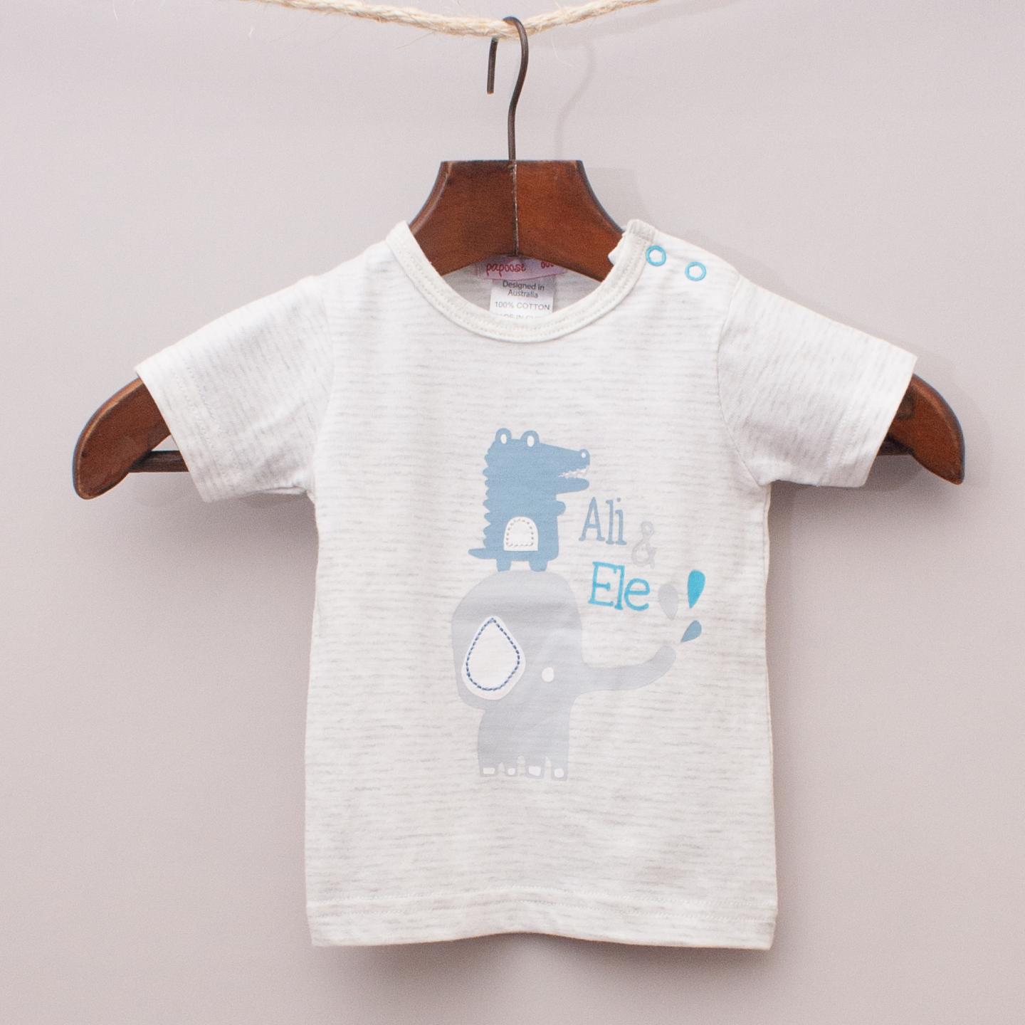 Papoose "brand new without tags" grey striped t-shirt with printed elephant on the front and snap button closure