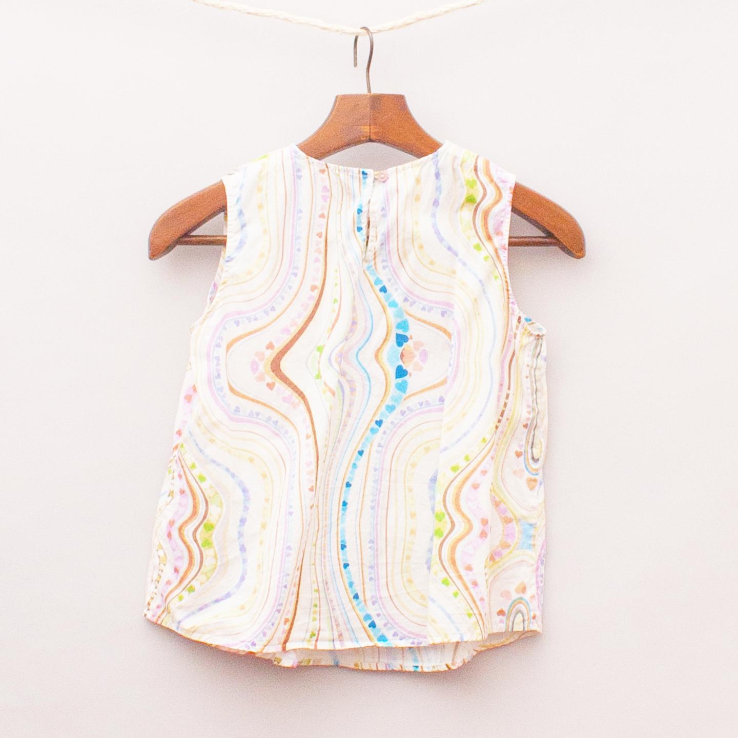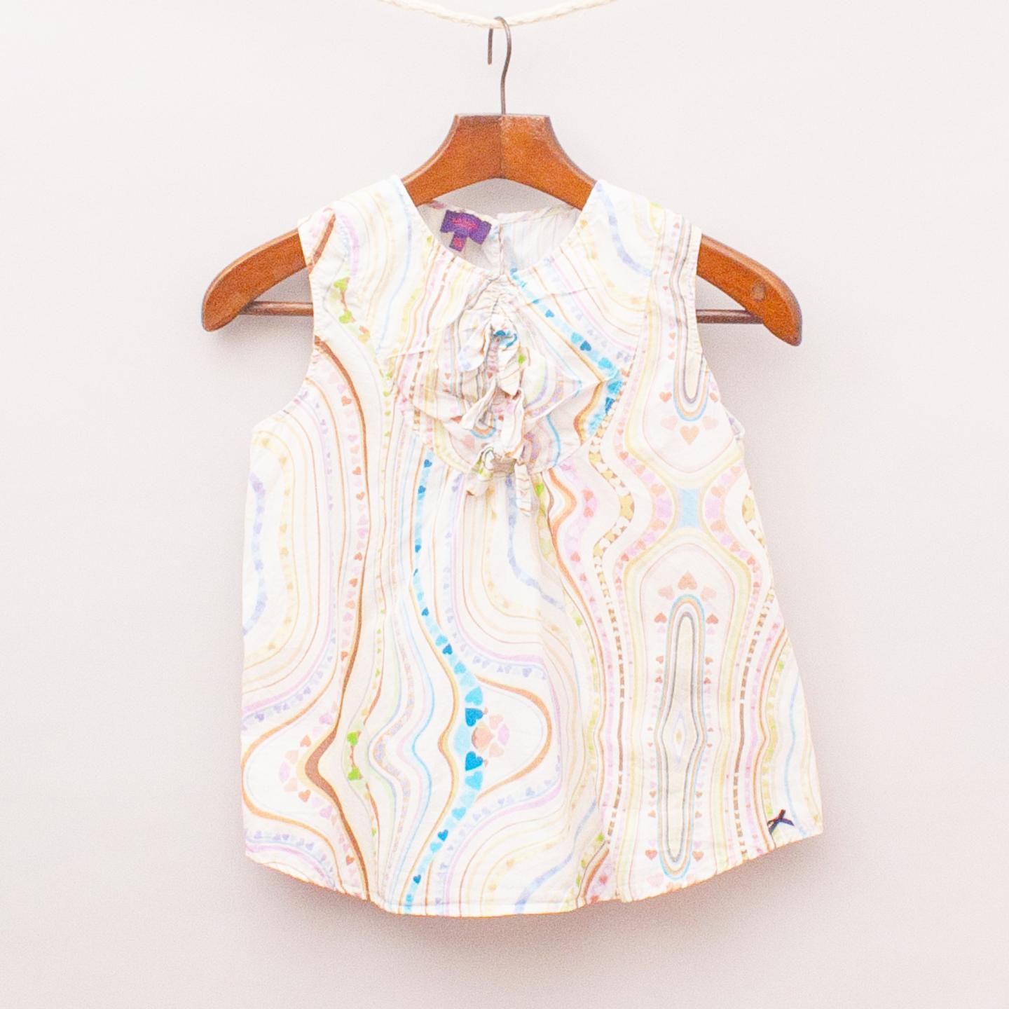 Paul Smith pastel patterned top with tie front detail and single button back closure