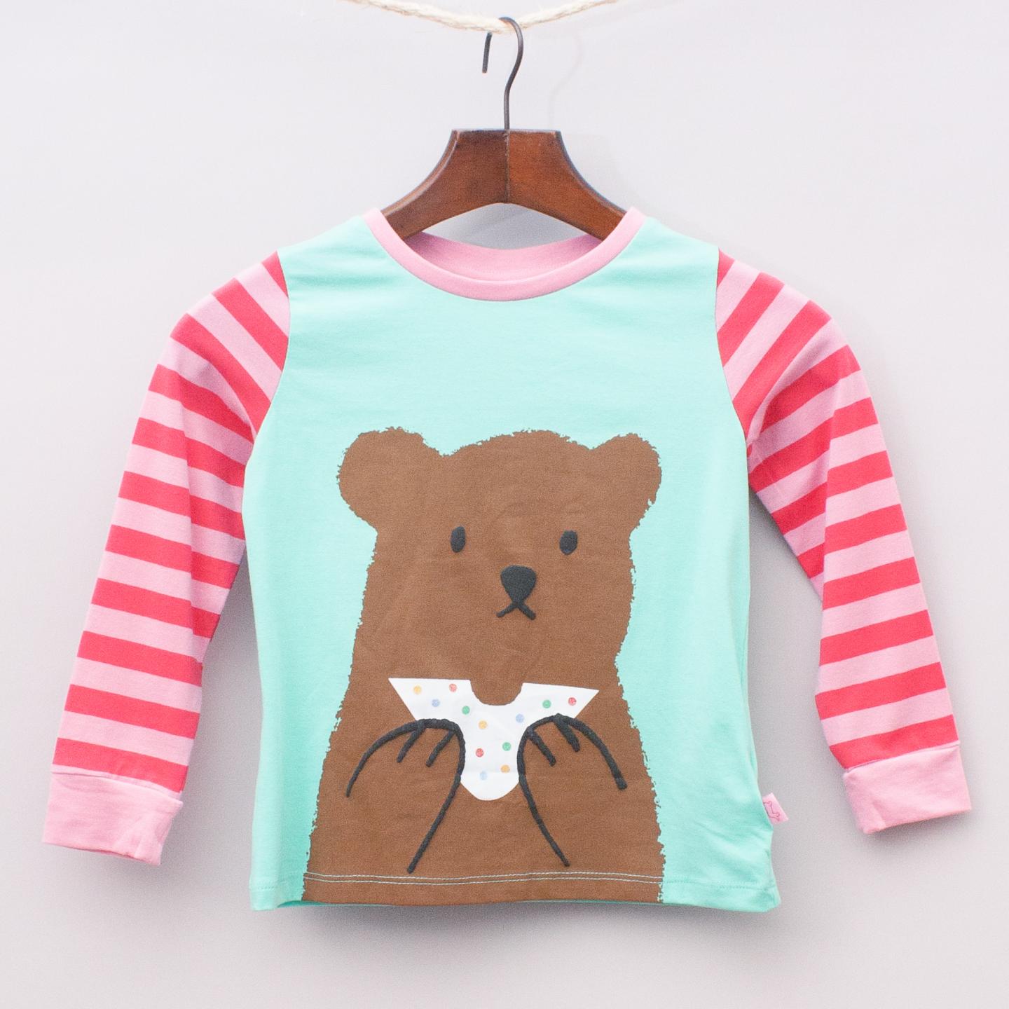 Peter Alexander "brand new with tags" mint green long sleeve top with printed bear on the front and pink and red striped sleeves *95% Cotton, 5% Elastane