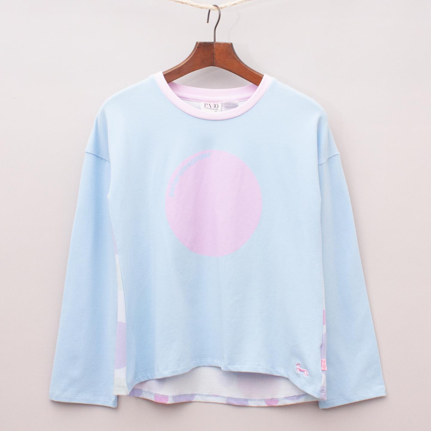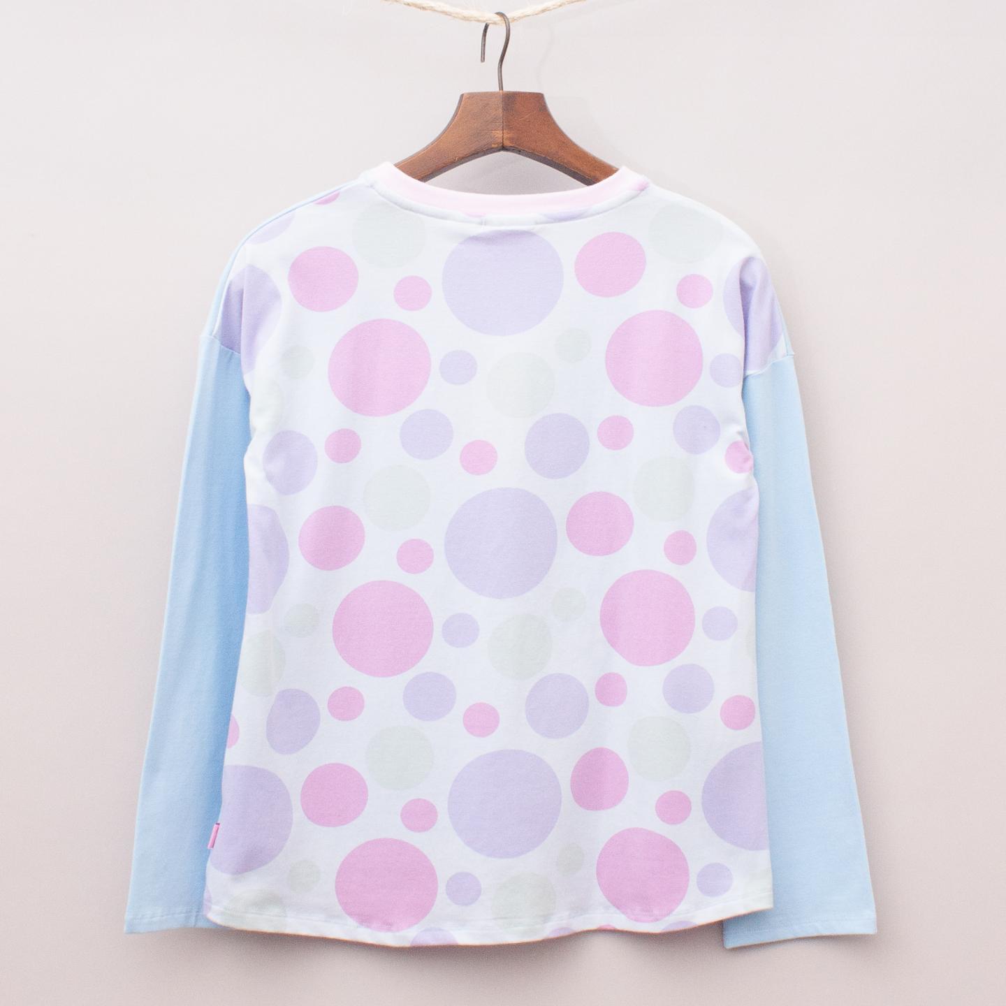 Peter Alexander "brand new with tags" light blue long sleeve pyjama top with pastel pink neckline, printed spot on the front and pastel polka dots on the back *95% Cotton, 5% Elastane