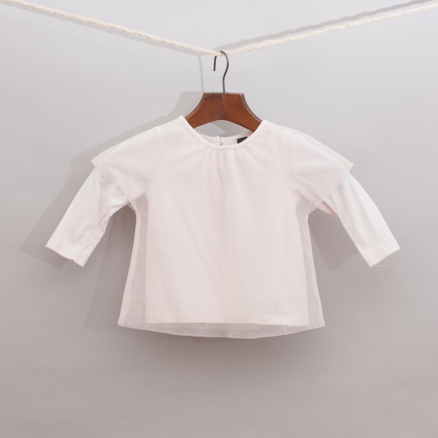 Peter Morrisey pastel pink long sleeve top with tulle overlay and single button back closure