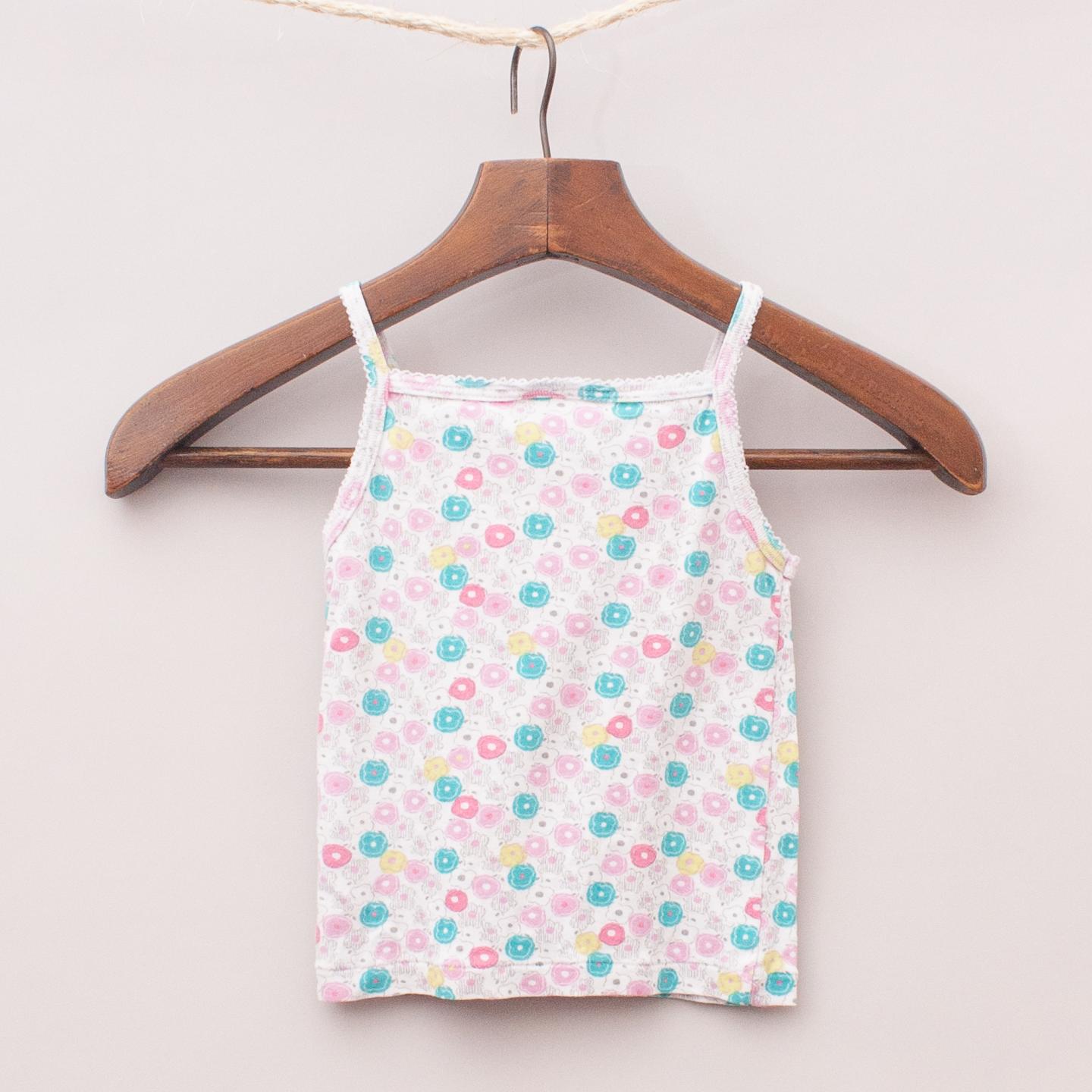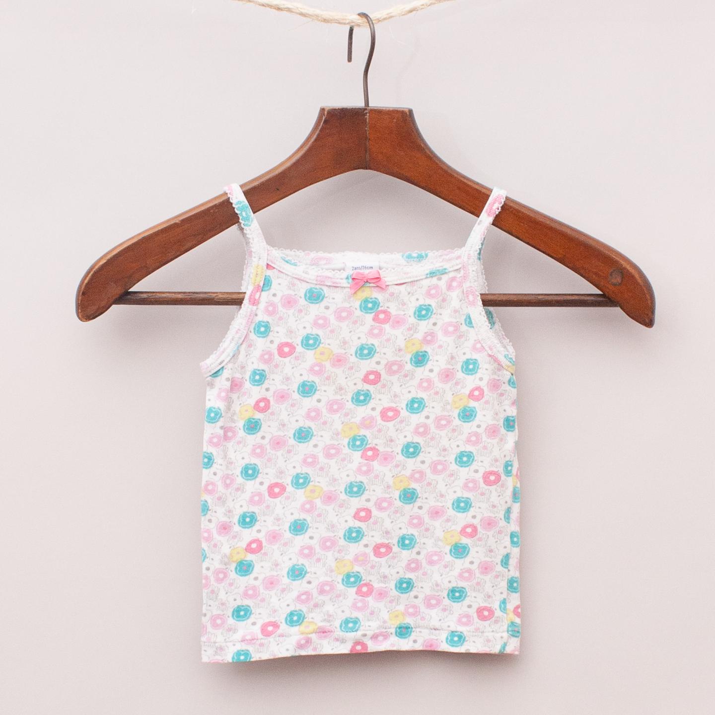 Petit Bateau floral patterned singlet with scalloped trim and bow detail on the front *100% Cotton