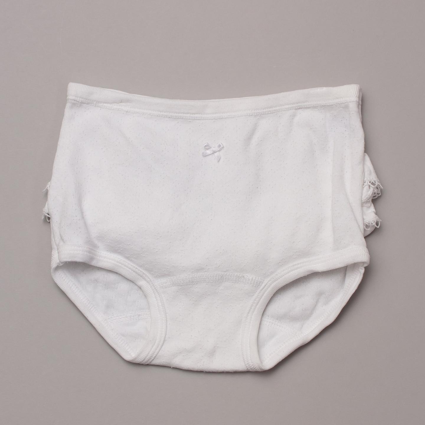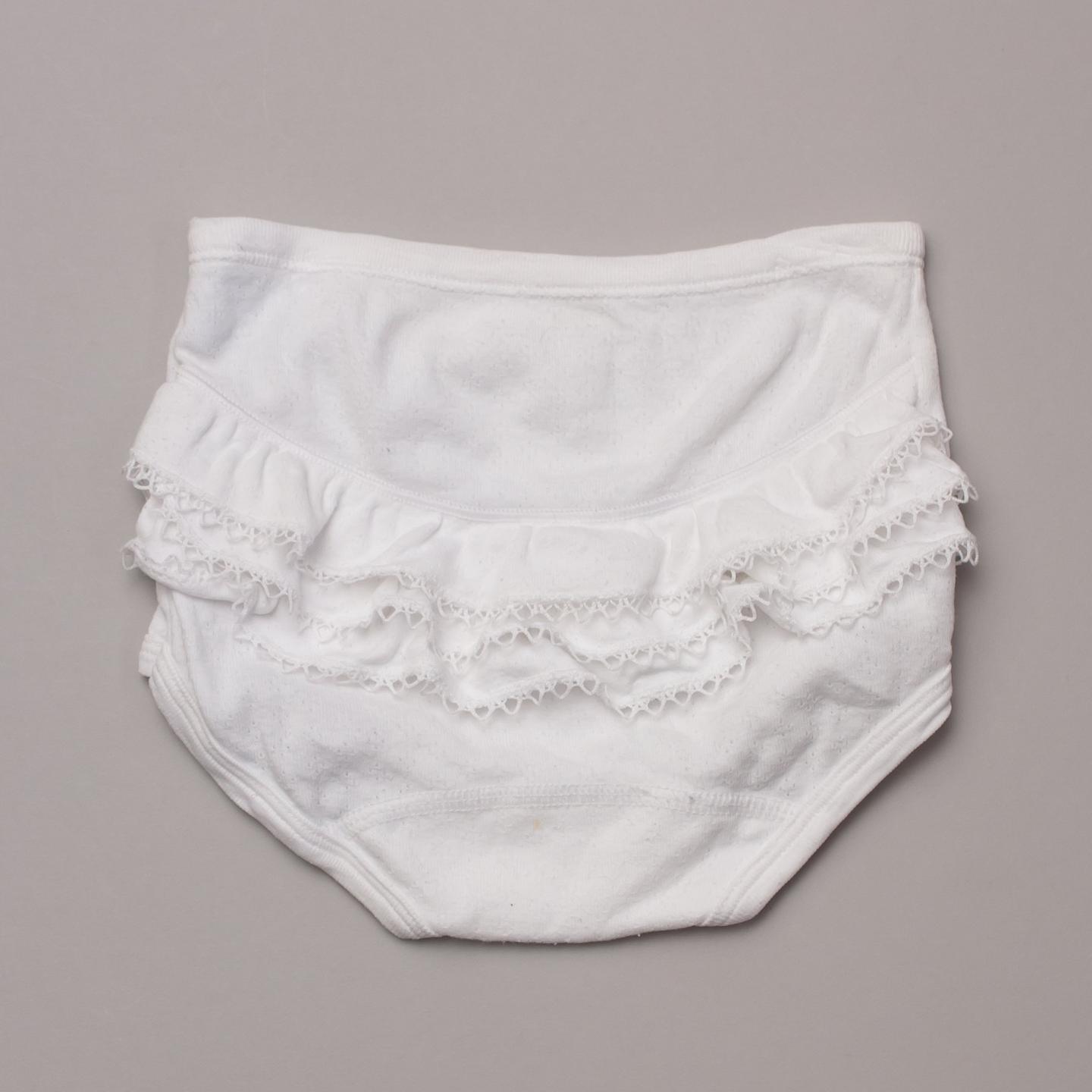 Petit Bateau white bottoms with ruffled details on the bottom and scalloped edges