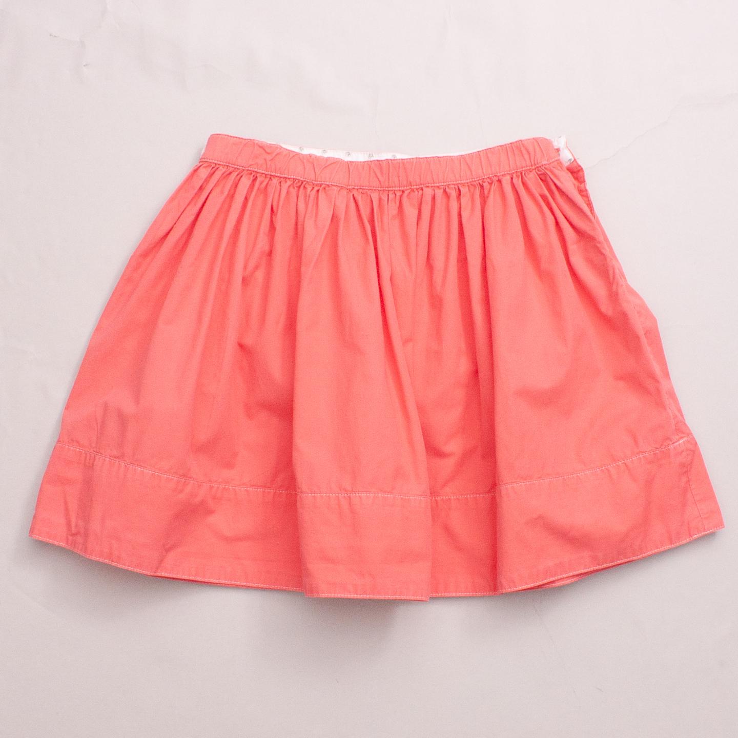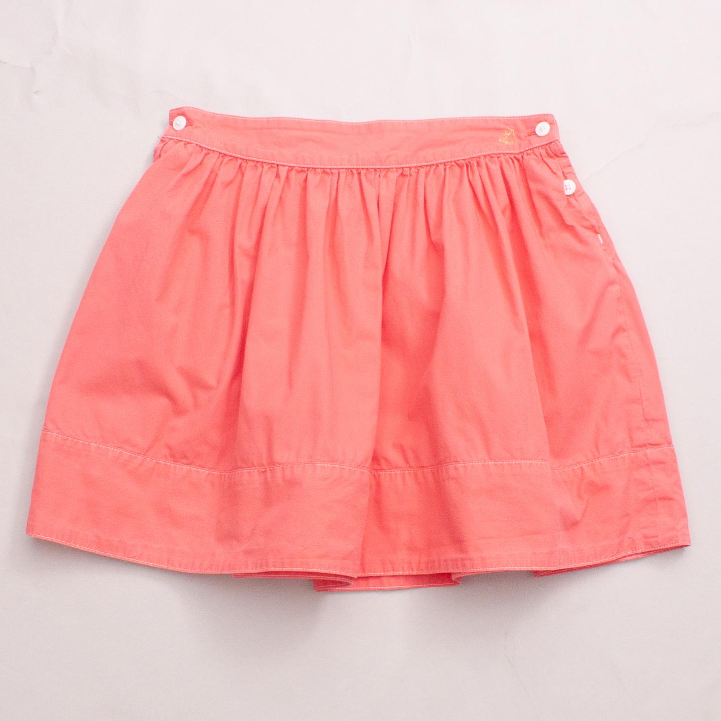 Petit Bateau watermelon pink/red skirt with gathered and elastic waistband, wide hemline and white button details *100% Cotton