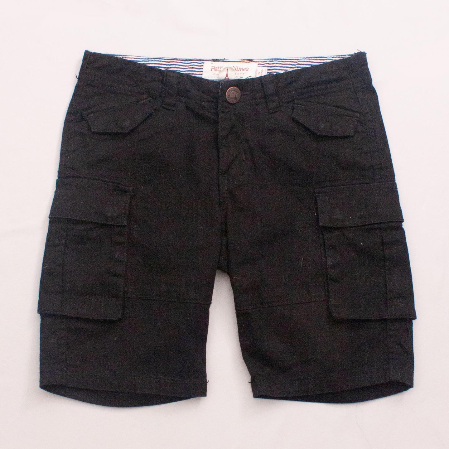 Petit DeNimes black cargo shorts with multiple pockets, belt loops and button/zip fastening *100% Cotton