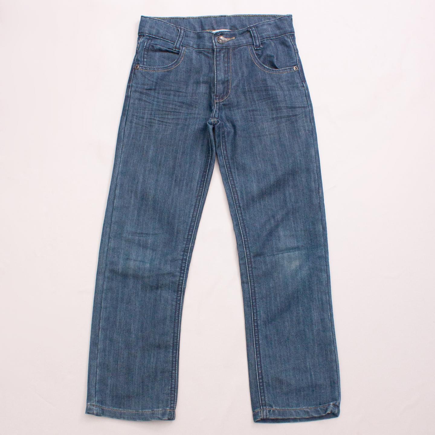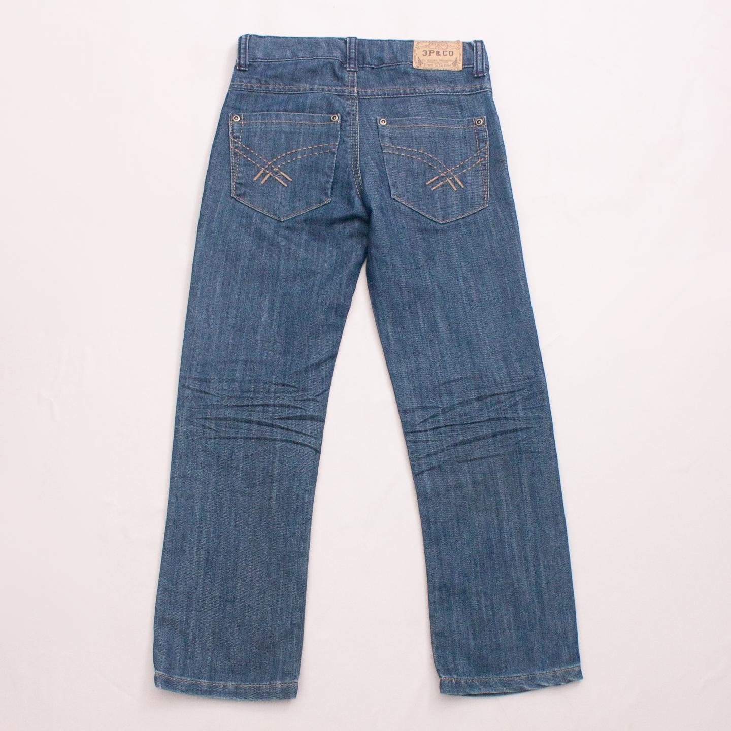 3Pommes distressed blue straight leg jeans with front and back pockets, belt loops and button/zip fastening *62% Cotton, 38% Polyester