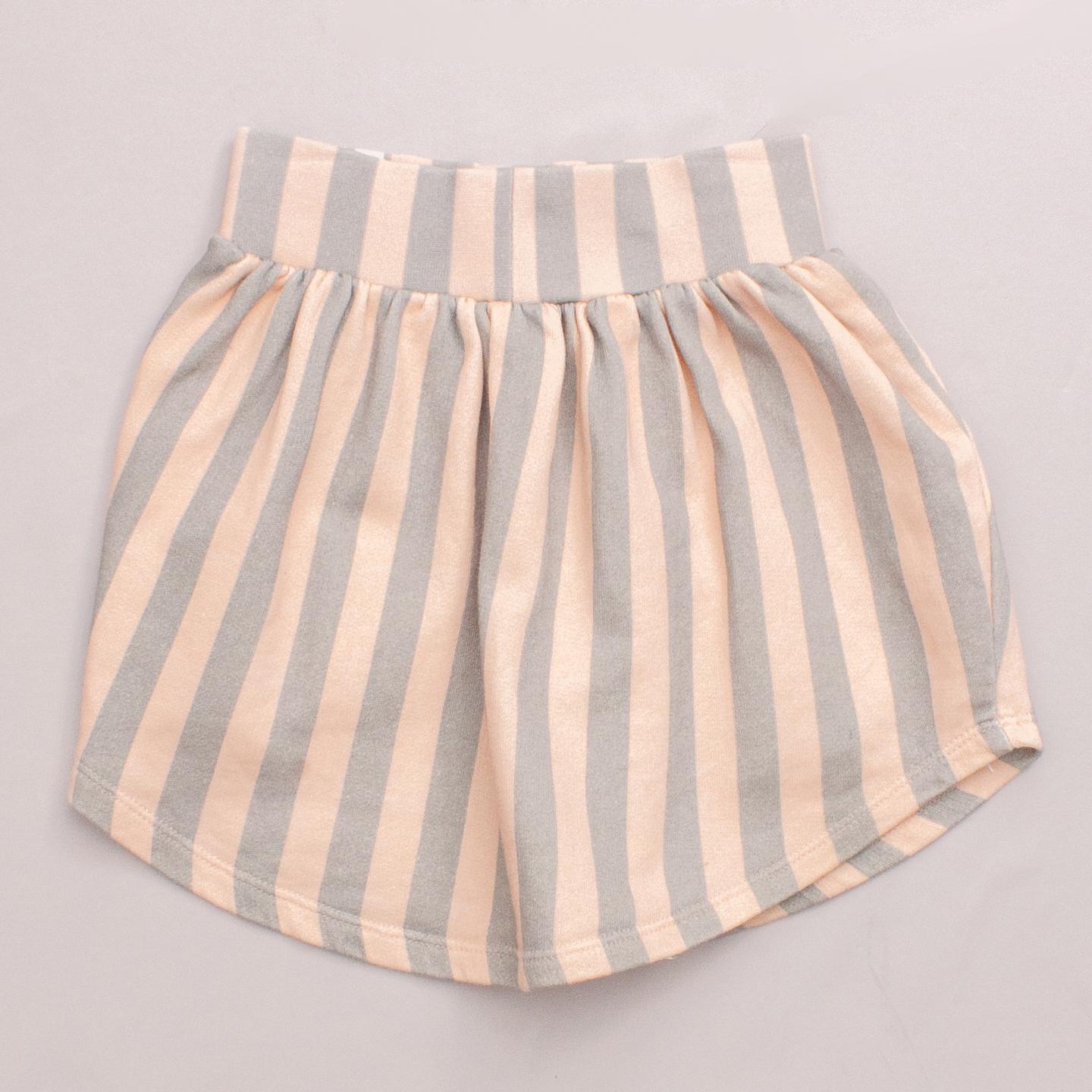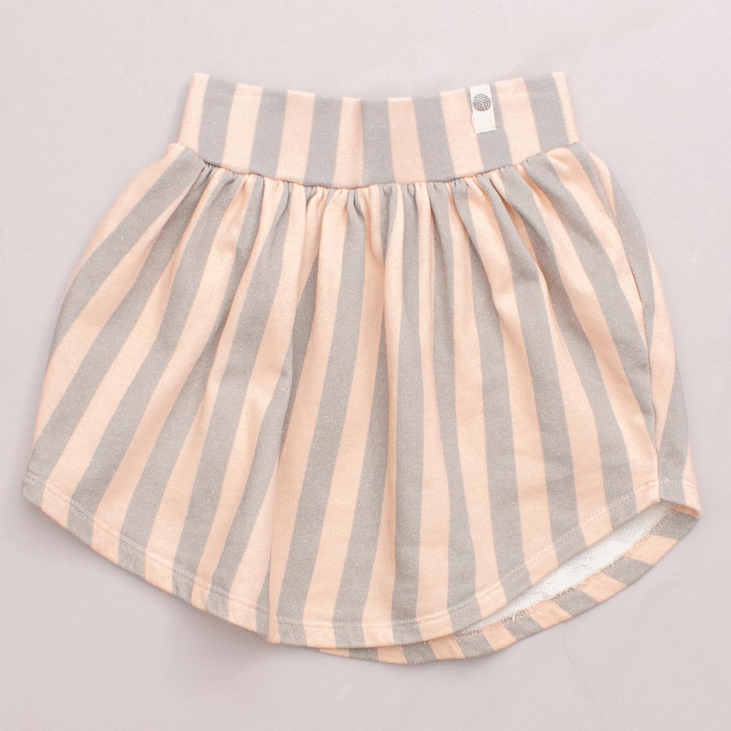 Pop Up Shop apricot and grey striped skirt with elastic waistband and gathered skirt *100% Organic Cotton