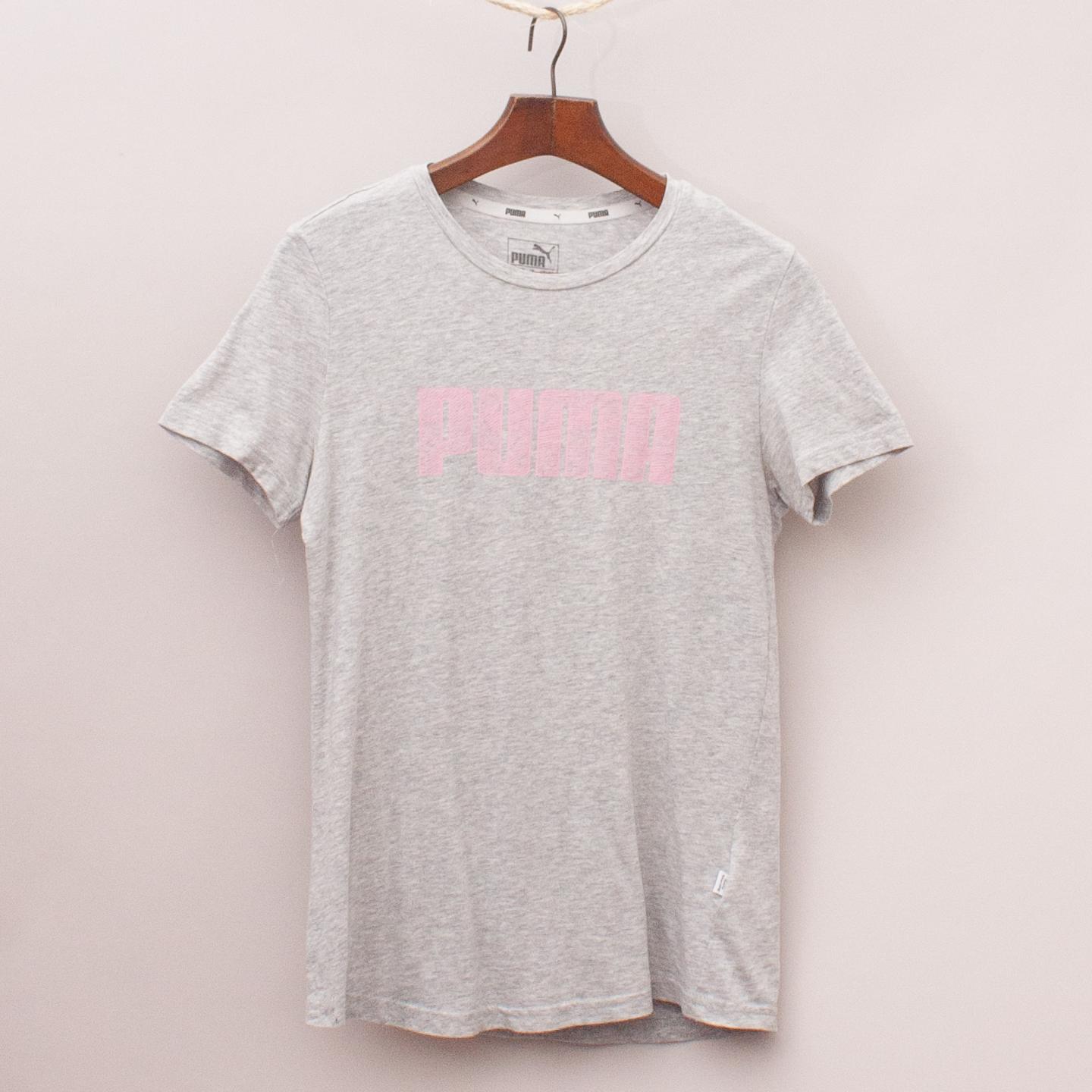 Puma grey marle t-shirt with printed pink logo across the front *100% Cotton