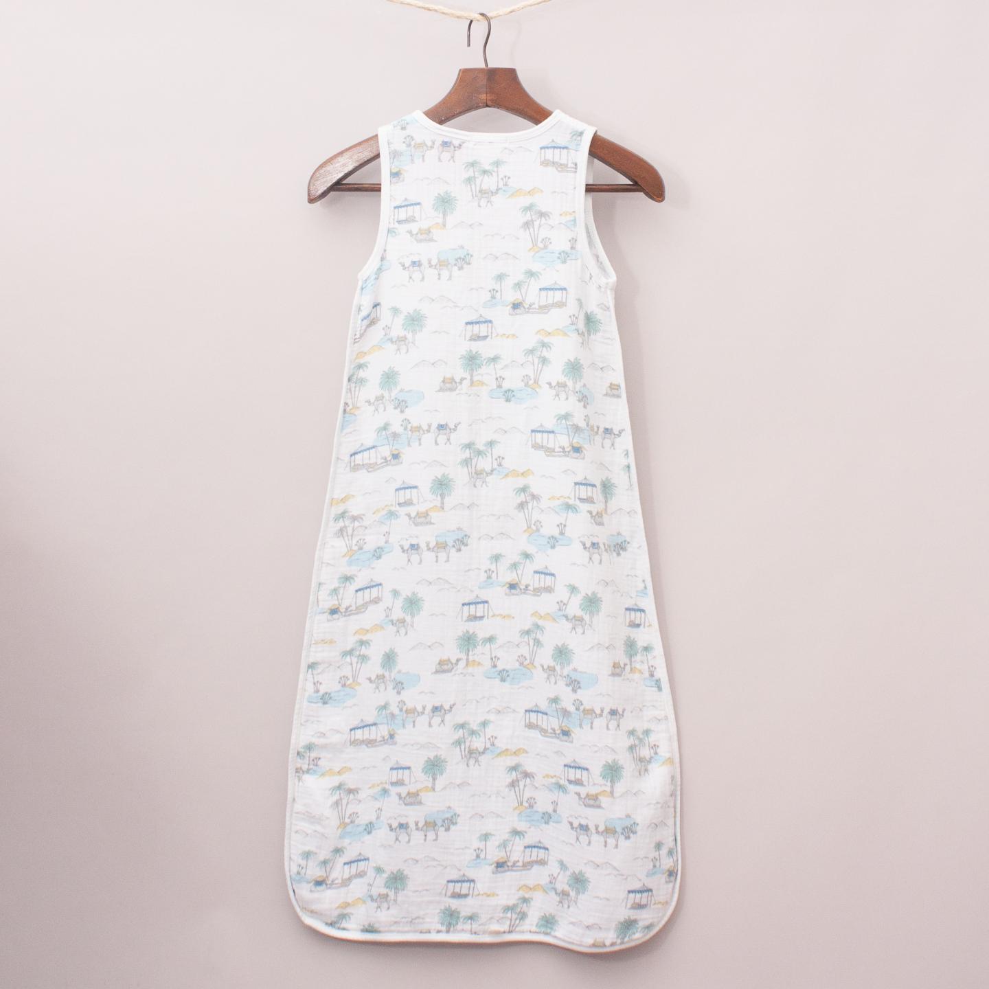 Purebaby organic cotton muslin, sleeveless sleeping bag, perfect for summer with island print throughout - TOG 0.5 Size 1-2yrs *100% Organic Cotton