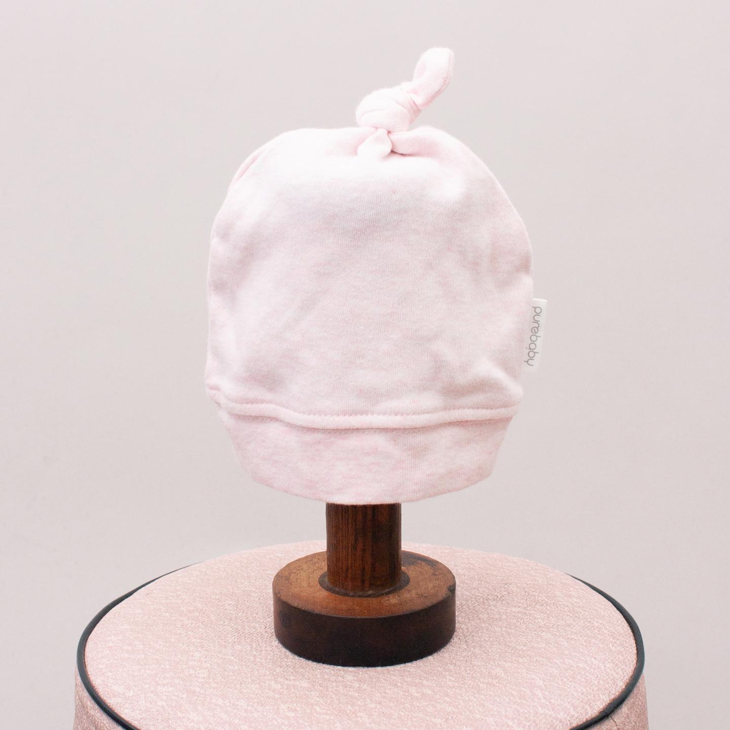Purebaby organic cotton pastel pink baby hat with knotted top - Size S Newborn *100% Organic Cotton