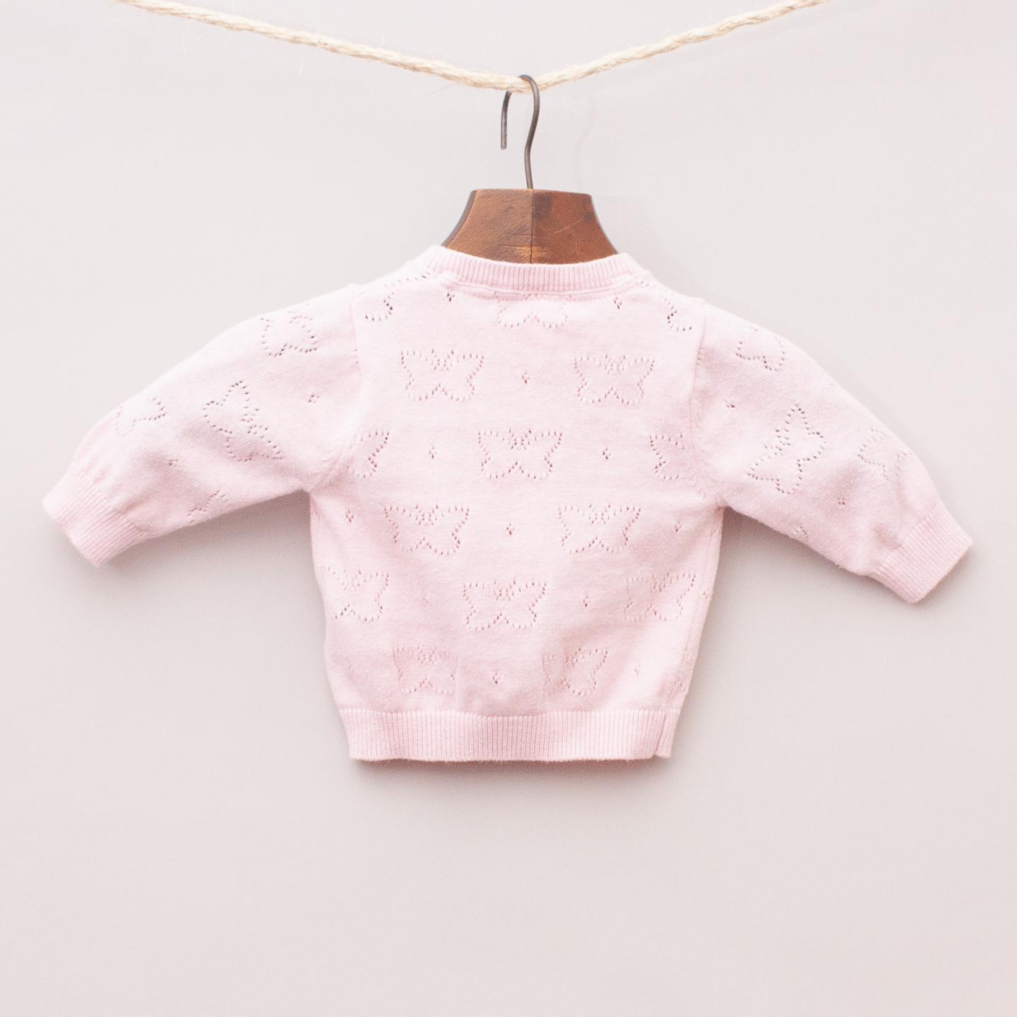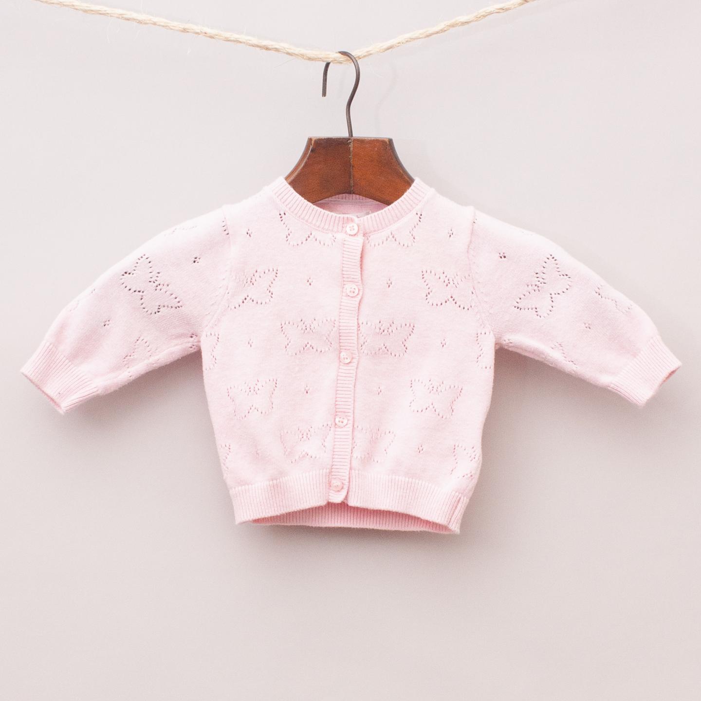 Purebaby organic cotton pastel pink cardigan with butterflies knitted into the fabric and button down front *100% Organic Cotton