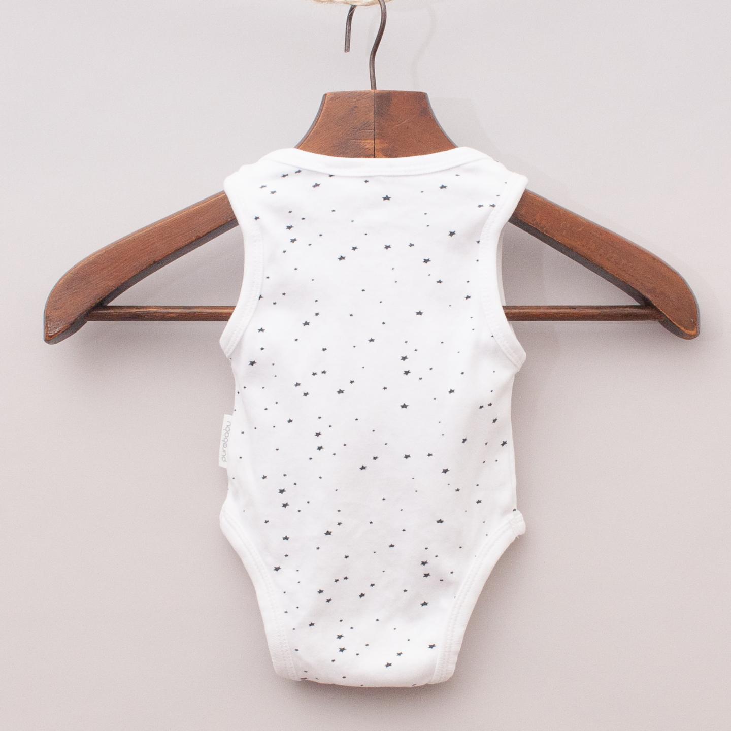Purebaby organic cotton white and star patterned sleeveless romper with snap button closures