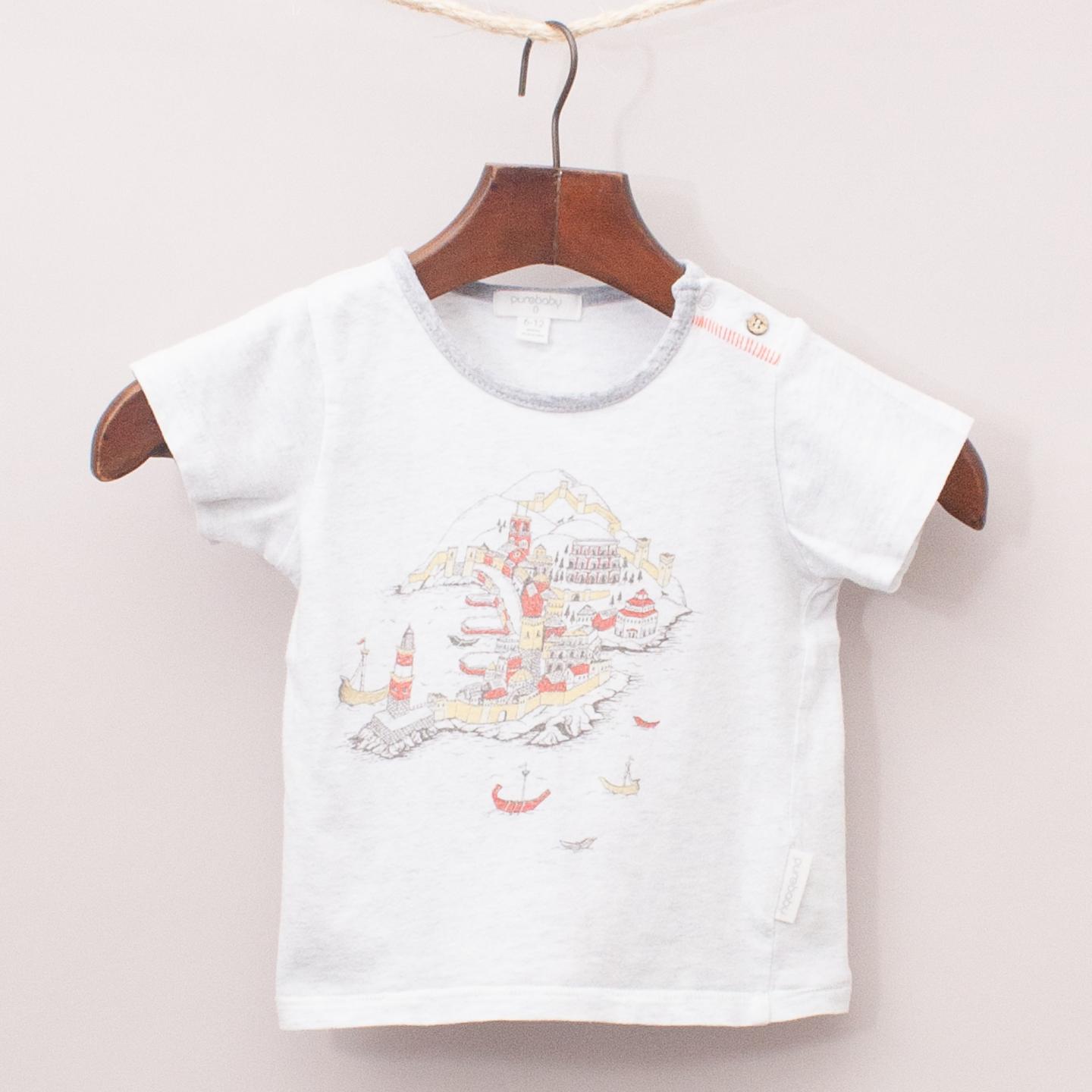 Purebaby grey and printed t-shirt with button closures *100% Organic Cotton