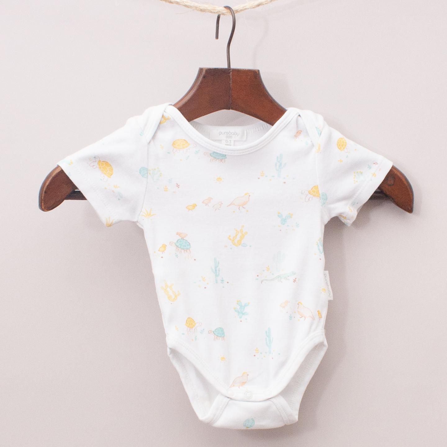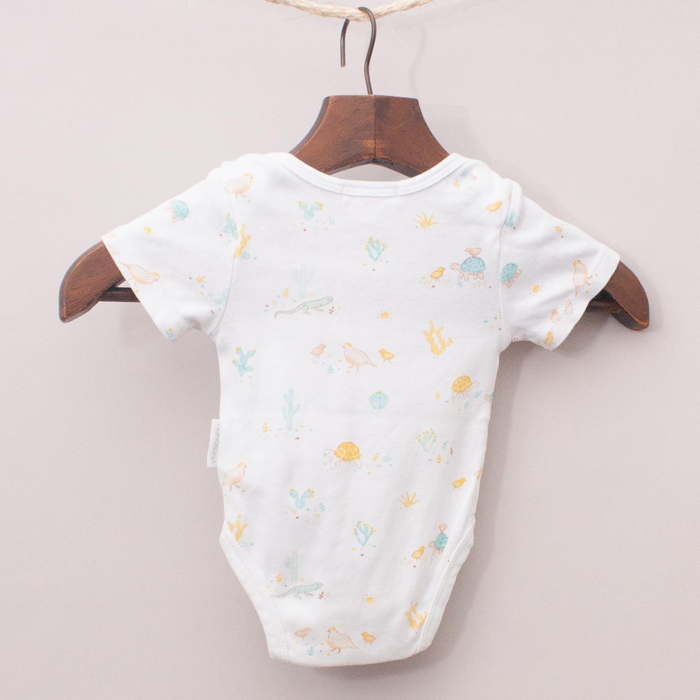 Purebaby white and animal patterned short sleeve romper with button closures *100% Organic Cotton