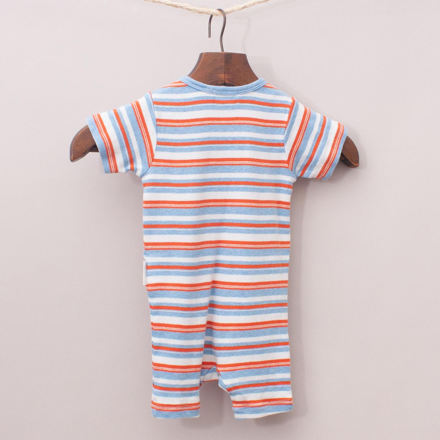 Purebaby red, white and blue striped, short sleeve romper with zip up front *100% Organic Cotton