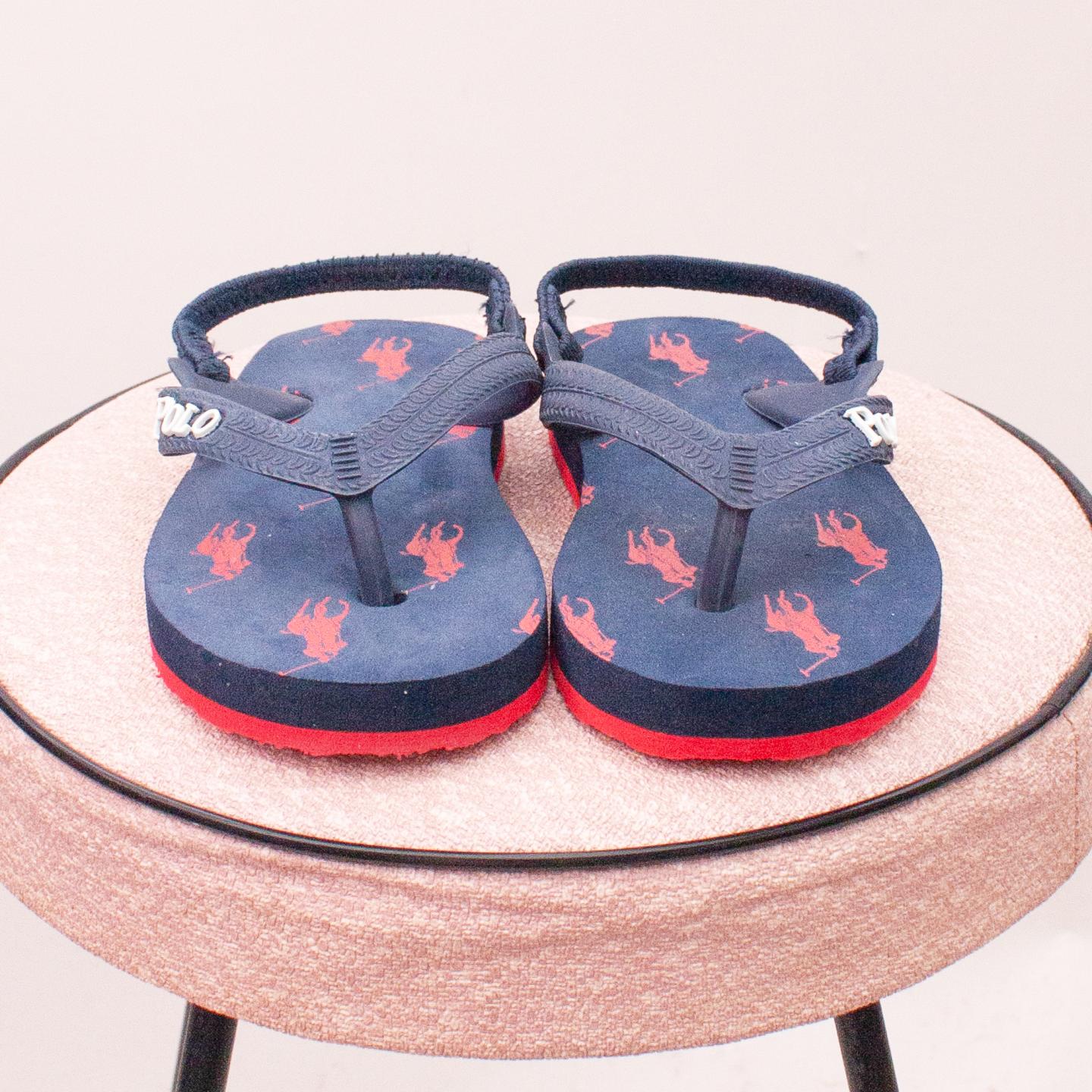 Ralph Lauren navy blue thongs with red sole and horse logo printed inside and ankle strap - Size EU 22 (0-12Mths approx.)