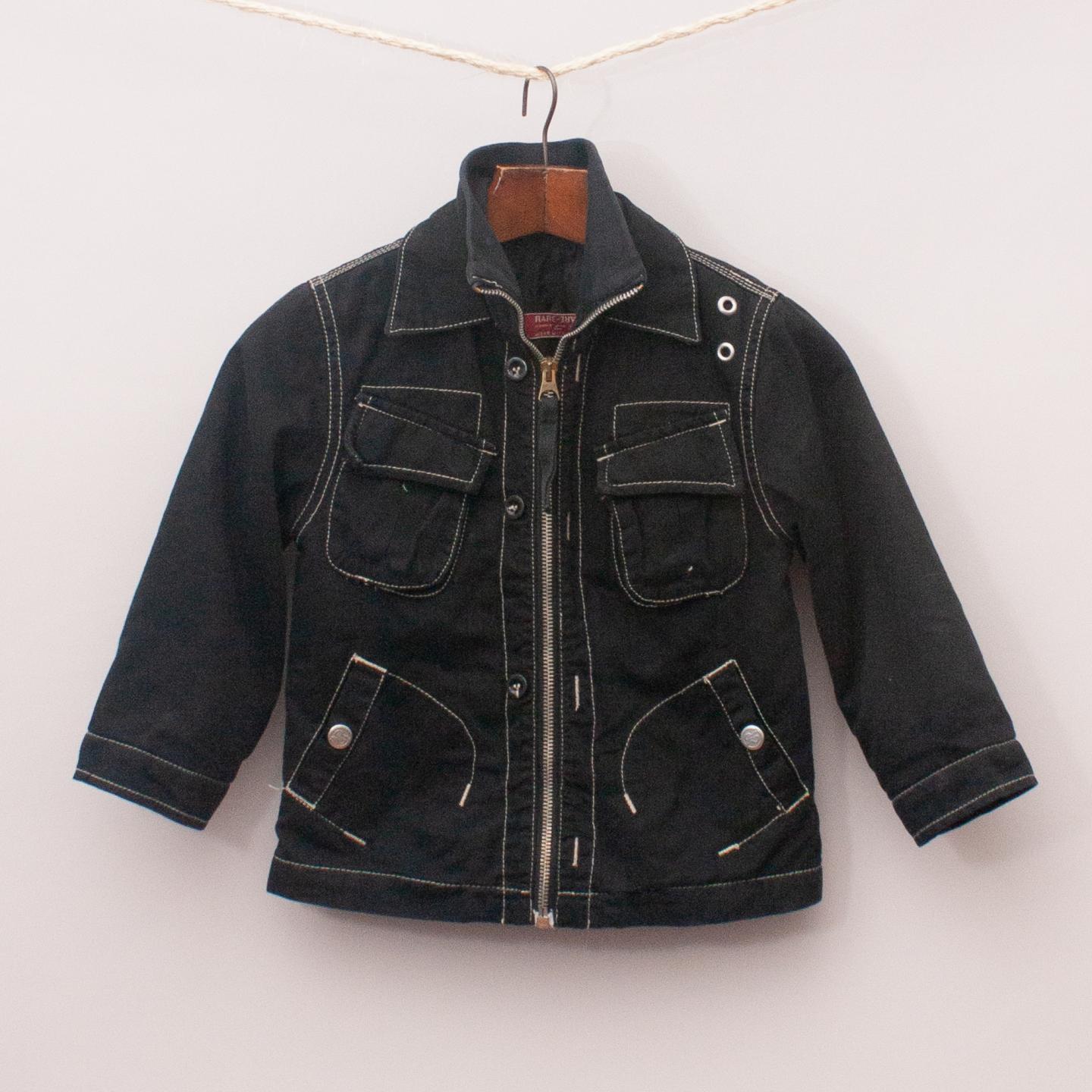Rare black jacket with exposed white stitching, multiple pockets, high neck collar and full zip up front *70% Cotton, 30% Polyester